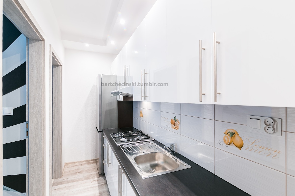 Um quarto de casal e fácil acesso à Cidade Velha e a todas as atrações locais por transporte público. Há muitas vagas de estacionamento gratuitas. A unidade de aluguer é novinha, tem uma casa de banho privativa com uma espaçosa cabina de duche, e uma pequena kitchenette com um frigorífico. Há uma cama king size no quarto, um colchão extra está disponível. O apartamento está separado dos quartos do anfitrião e tem uma entrada separada para o edifício. Idiomas falados: inglês, polonês, espanhol.