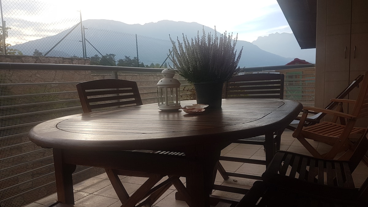 L' appartamento si trova la secondo e ultimo piano di una casa storica nel centro di Sopramonte ed è ristrutturato ed arredato a nuovo. La cucina ha in dotazione grandi elettrodomestici e tutto l occorente per cucinare. Dal soggiorno si apre un terrazzino con vista sulle montagne con tavolo e sedie. Ci sono lettino e seggiolone per bambini da 0-6 anni. La biancheria è compresa nel prezzo. Al piano terra c'è un deposito per sci, biciclette o altro