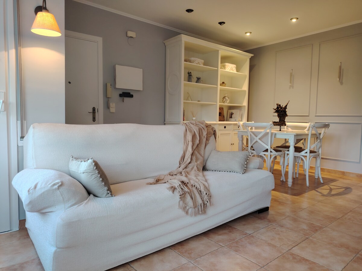 Este apartamento tem um charme especial. Ideal para uma família de até 4 pessoas, tem uma cozinha - sala de jantar, lareira, pequeno salão, banheiro e um quarto duplo, com um loft como beliche. Terraço privado ideal para jantar fora. Espaços ao ar livre compartilhados com outros hóspedes. * Acesso à estrada terrestre (2km).