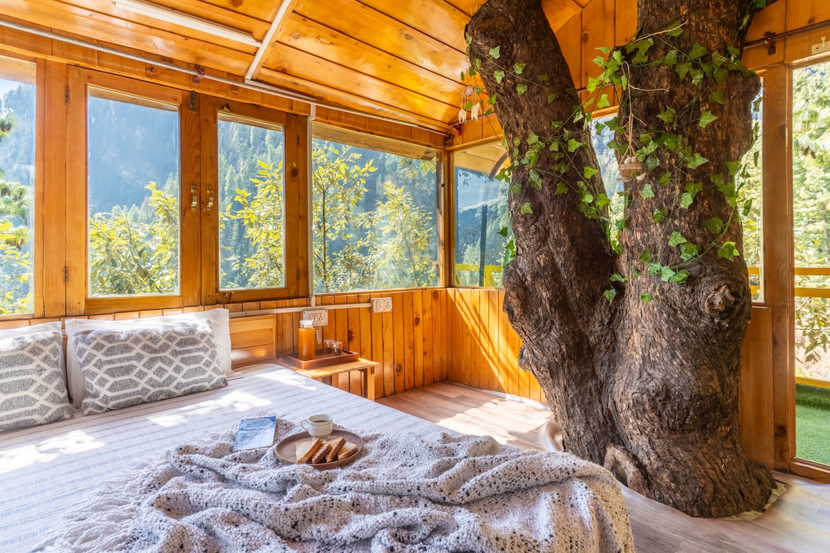 Experimente a mistura perfeita de natureza e opulência, situada no topo da colina Tandi, perto de Jibhi. Delicie-se com um mergulho luxuoso em um banho de espuma quente enquanto aprecia vistas deslumbrantes diretamente da sua banheira. Situado longe da estrada e do barulho do trânsito, os únicos sons que você encontrará são o canto melódico dos pássaros. Com uma cabana de vidro, você pode até avistar um esquilo voador ou avistar uma estrela cadente no céu noturno sereno. Relaxe e aproveite a tranquilidade deste retiro chique e tranquilo.