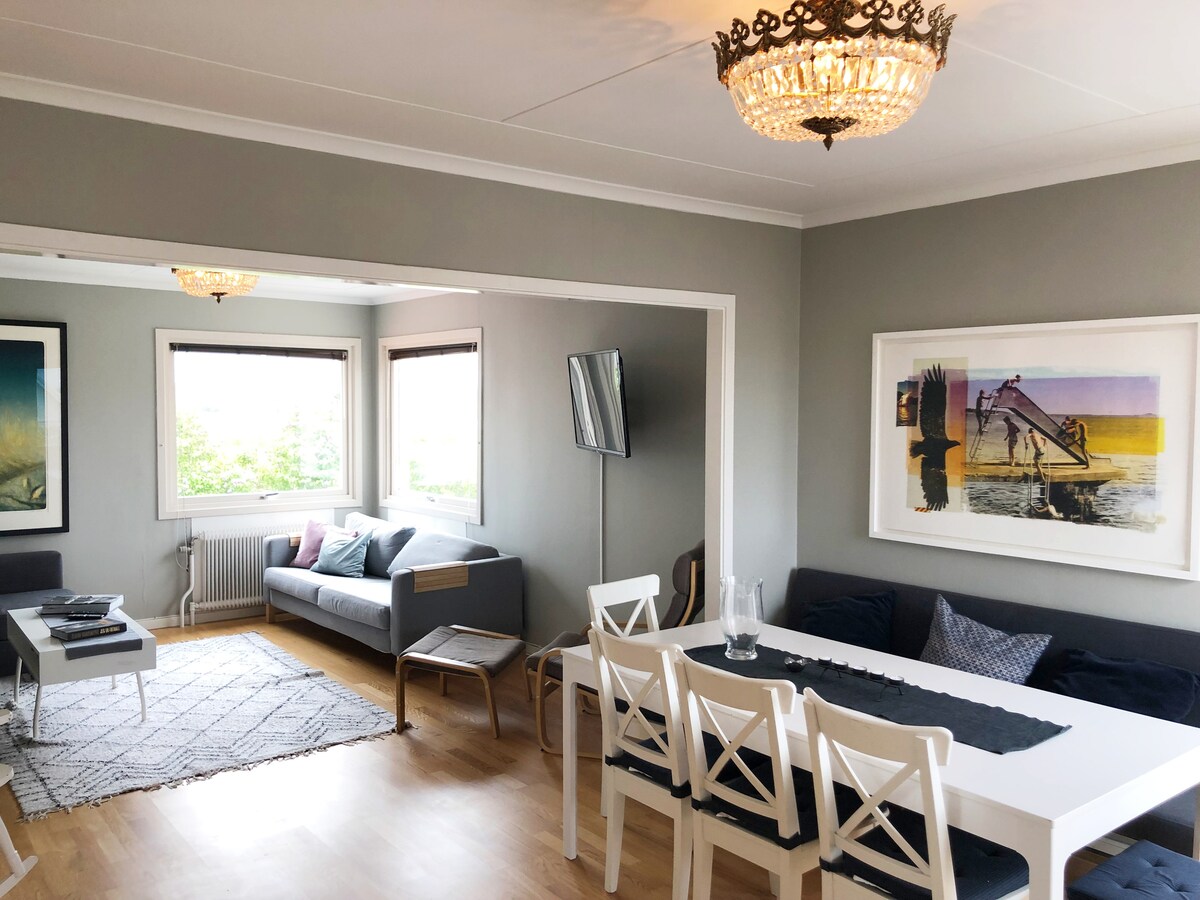 Relaxe com toda a família nesta acomodação tranquila de 50 m², mais 20 m² de loft. Perto do campo de golfe, do mar e de restaurantes. Estacionamento gratuito para vários carros e um grande gramado para as crianças brincarem. Quatro camas mais um sofá-cama para os pequenos. Lençóis não incluídos, podem ser alugados separadamente por 100 SEK por pessoa A limpeza não está incluída, mas pode ser providenciada por uma taxa de 500 SEK/reserva Possibilidade de carregar o carro elétrico mediante o pagamento de uma taxa.