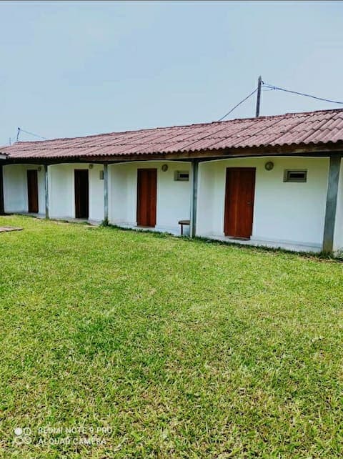 O quarto ventilado é independente da casa. Ele está localizado no pátio traseiro, que se abre diretamente para o mar. Um banheiro com vaso sanitário é adjacente, o ventilador é suficiente para refrescar o ambiente sombreado por coqueiros. Pode acomodar 2 pessoas em uma cama de casal. É mobiliado com uma escrivaninha, alguns baús e outros armários. Para uma excelente estadia com "orçamento apertado", este é o lugar perfeito! Uma cozinha está instalada no cômodo ao lado.