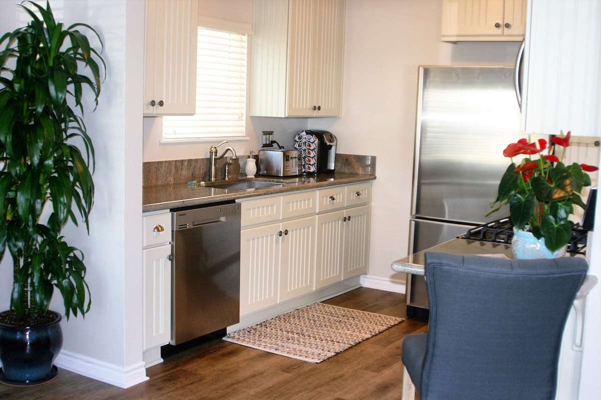 A Citrus Cottage é uma espaçosa casa de hóspedes independente no coração de Old Towne Orange. É um ótimo lugar para os pais dos alunos da Chapman ficarem enquanto visitam seus filhos. A uma curta distância a pé do Círculo, com tantos restaurantes e bares excelentes que dificulta a escolha de onde ir. Detergente sem perfume e sem plugue em purificadores de ar são usados. Muitas vagas de estacionamento disponíveis. Perto da Disneylândia. Chegue a algo refrescante na geladeira e acorde com um café quente.