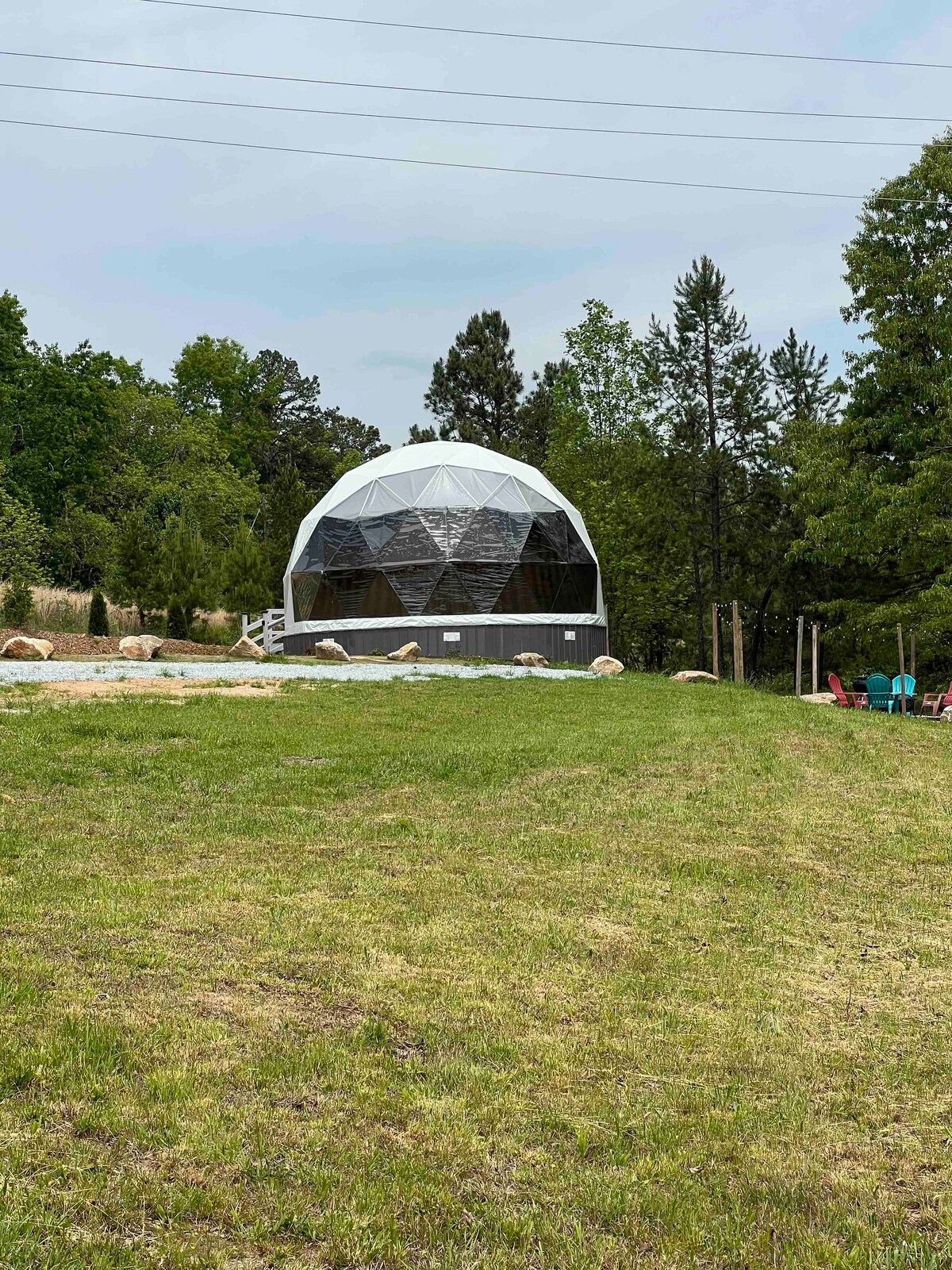 Field Trip é um Glampground único de 23 unidades em Travelers Rest, SC. Todas as nossas unidades têm acesso ao nosso Lodge, banheiros e amplas comodidades. A unidade 17 é uma Geo Dome que aceita cães escondida na floresta, perfeita para 2 pessoas e seu amigo peludo. Possui uma cama queen size com uma opção de berço adicional para um máximo de 3 pessoas. Aquecimento e ar-condicionado, roupa de cama de luxo, cafeteira, área de estar, lareira privativa ao ar livre. *Esta unidade está localizada no topo de um morro. Os hóspedes precisam subir uma encosta íngreme.