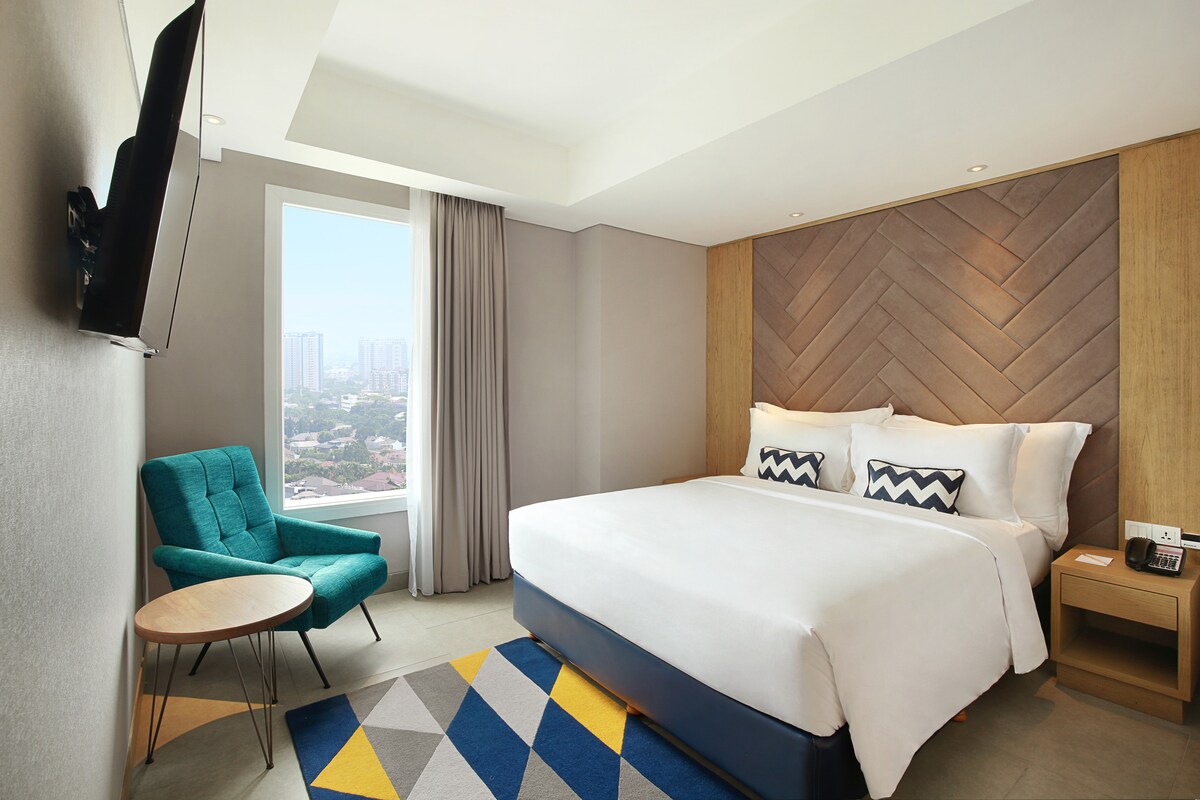 Swiss-Belinn Simatupang é um hotel internacional de 3 estrelas em Jacarta, localizado em TB Simatupang, o novo distrito comercial central de South Jakarta. Localizado na South Jakarta Outer Ring Road, o hotel permite fácil acesso ao distrito comercial central em South Tangerang, West e East Jakarta e fica a uma curta distância a pé da Estação MRT Lebak Bulus. Rodeado por novos escritórios, o hotel também oferece fácil acesso ao Aeroporto Internacional de Soekarno-Hatta, tornando-o a escolha de acomodação simples e conveniente para viajantes de negócios exigentes para Jacarta.<br> Swiss-Belinn Simatupang é uma acomodação confortável e conveniente que oferece uma variedade de instalações de padrão internacional, incluindo salas de reuniões, piscina, bar, restaurante e lounge para garantir um ambiente acolhedor e amigável para receber viajantes de negócios. O hotel possui 159 quartos, incluindo Deluxe, Apartamento, Suíte de Negócios e Suíte Premiere.<br><br>Experimente jantar no ambiente acolhedor e agradável de Barelo. Localizado no 2º andar, o restaurante oferece uma variedade de cozinhas internacionais e locais em um buffet de café da manhã ou menu à la carte durante todo o dia. Projetado para refeições casuais e também fornece serviços de jantar no quarto 24 horas e acesso à Internet Wi-Fi gratuitamente.