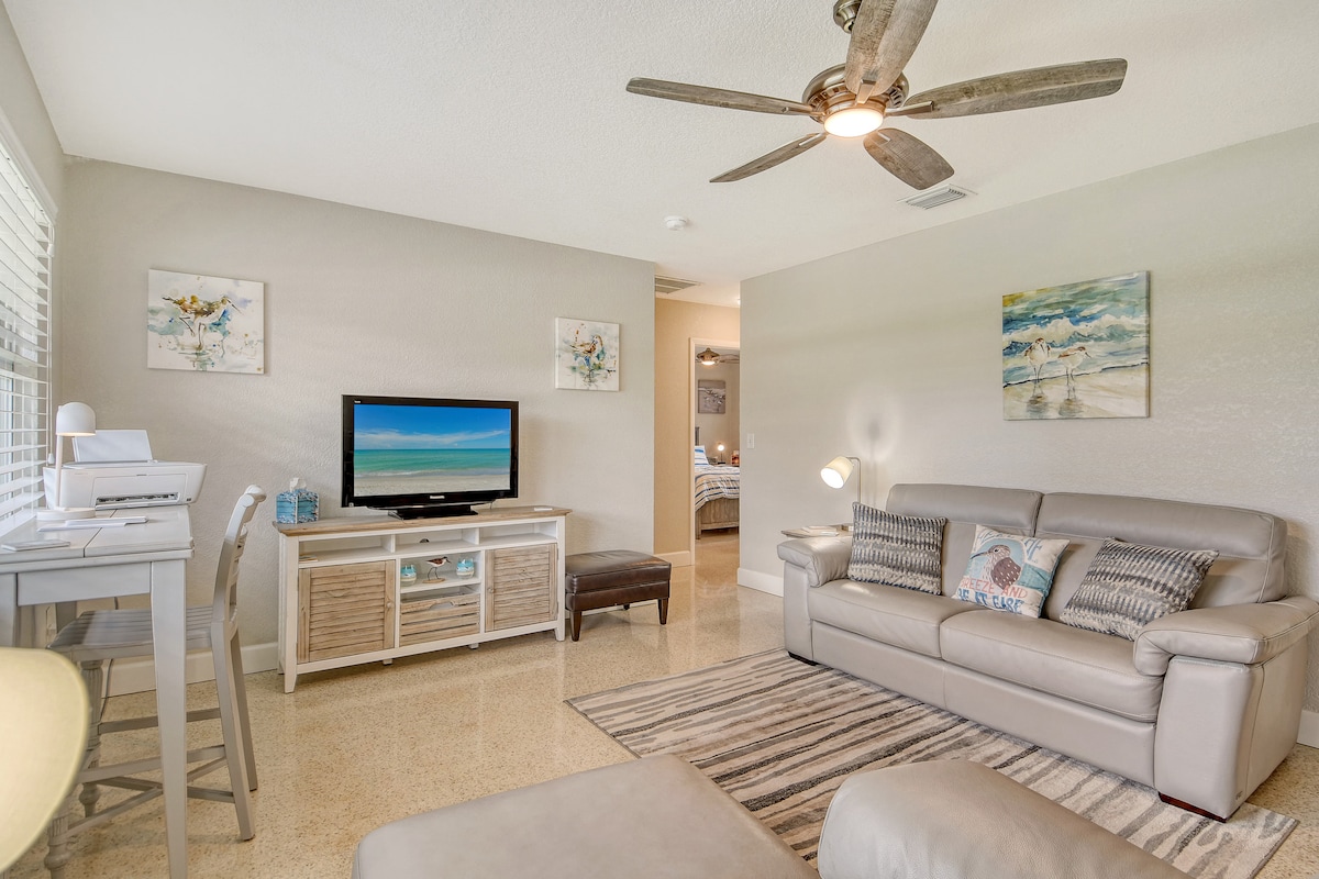 Retiro costeiro privado a minutos da praia de Siesta Key. Este espaçoso apartamento de 950 pés quadrados no andar de cima apresenta tetos altos, um layout aberto brilhante e uma entrada privativa. Desfrute de uma cama king size, cozinha completa, lavadora e secadora na unidade, Wi-Fi rápido e estacionamento dedicado. Perfeito para casais ou hóspedes que procuram uma estadia tranquila e confortável perto da praia. Avaliação consistente de 5⭐ em limpeza, conforto e comunicação. Ideal para casais que procuram uma estadia tranquila e confortável na praia.