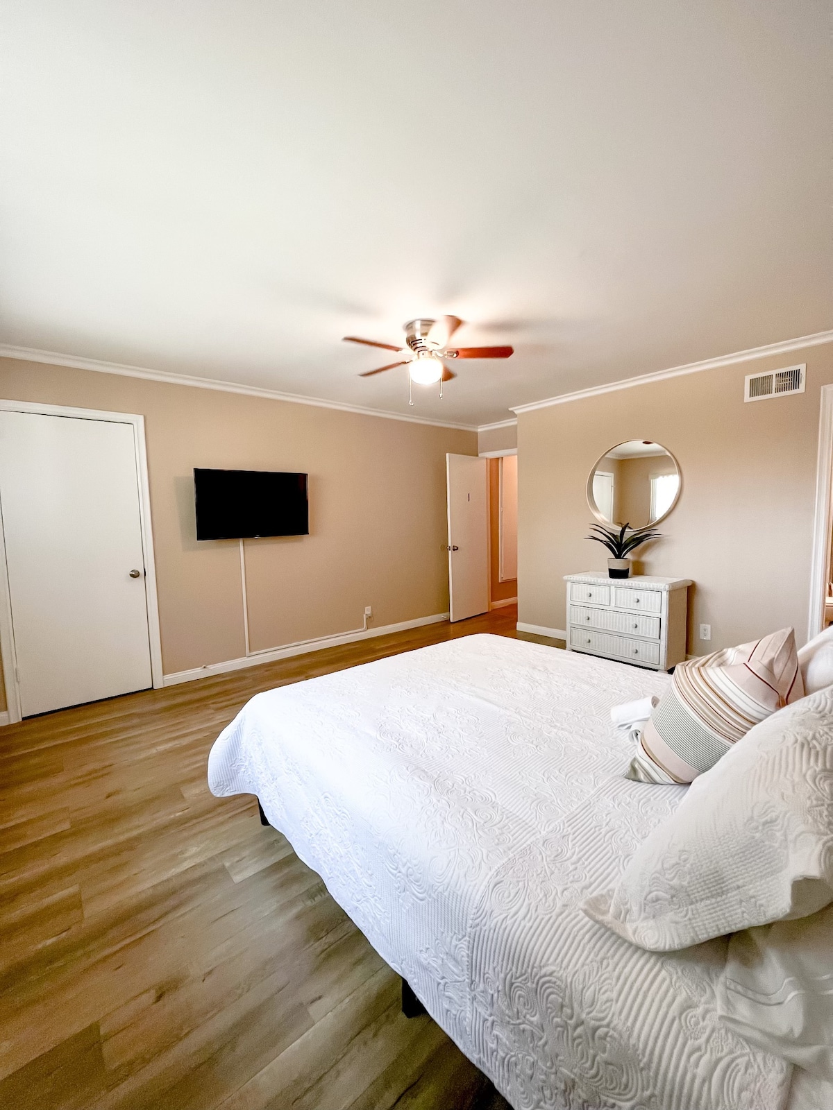 ✨ Newly Remodeled, Clean, Cozy 1st-Floor One Bedroom Master Suite w/Attached Bath and Private Entrance • 10 Mins ⇆ Disneyland • No Curfew, Self-Check-In • Free Driveway Parking in a Safe, Quiet Neighborhood • Comfy Bed + Premium Linens • Fast WiFi, A/C, Air Purifier, Smart TV, Mini Fridge • Convenient Location & Quick Freeway Access • Microwave, Coffee Maker, Hot Water Kettle • Large, Relaxing Private Outdoor Patio w/Sunbed • 5 Mins ⇆ Knott’s, Dining,Shopping • Beach Towels • Toiletries