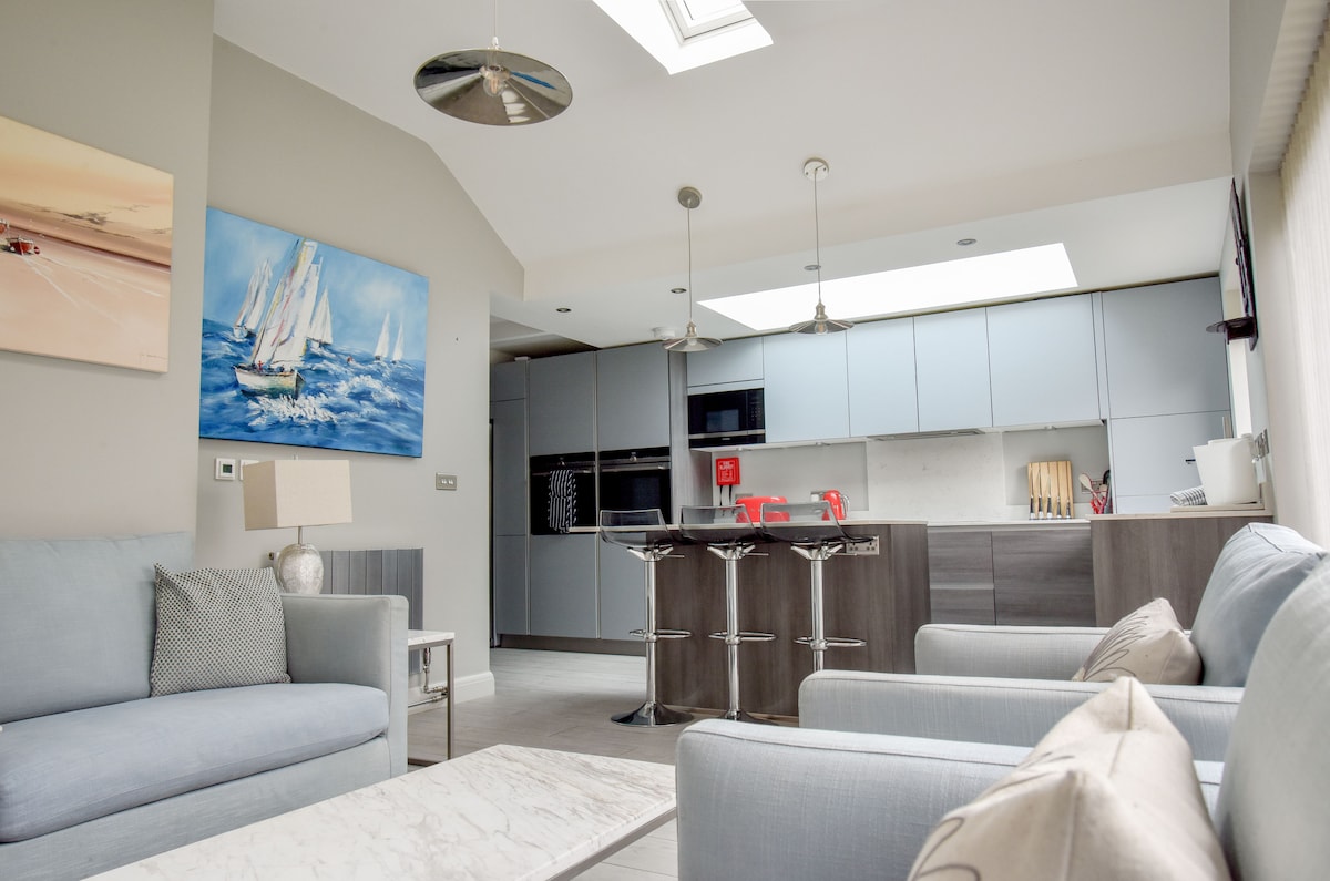 Viva momentos inesquecíveis nesta casa única e ideal para famílias. A cunha é uma casa única situada em 3 andares na forma de uma cunha! Uma propriedade moderna e totalmente renovada que oferece uma casa de luxo elegante longe de casa. Uma excelente localização a apenas 30 segundos a pé da praia, a 2 minutos do parque temático Adventure Island e cercada por muitos restaurantes encantadores. 2 quartos de casal e um sofá-cama de casal permitem até 6 hóspedes.