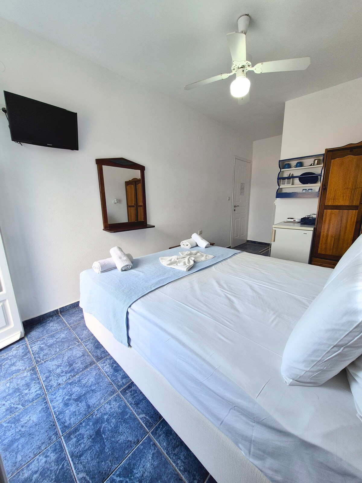 Esta propriedade fica exatamente na praia. A família administra quartos modernos, com uma pequena recepção, uma lanchonete para café da manhã, café, lanches e coquetéis. Este quarto tem mobiliário moderno com espelho completo, secador de cabelo, cofre, Wi-Fi, geladeira e banheiro. No terraço há uma pequena mesa com cadeiras para vista para o mar. Este anúncio é para 1 dos nossos quartos básicos.