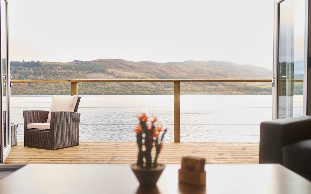 Chalé acolhedor nas Terras Altas com vista deslumbrante para o lago