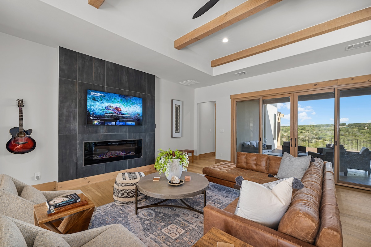 Bem-vindo ao Bee Creek Cottage — um refúgio elegante e moderno situado no Texas Hill Country. Perfeito para casais, pequenos grupos ou estadias de noivas, este oásis privado oferece vistas para a natureza, interiores elegantes e fácil acesso a vinícolas e Austin. Deck 🌊 privativo com banheira de hidromassagem 🔥 Fogueira com cadeiras Adirondack e vista para a região montanhosa 🕹️ Sala de jogos compartilhada 🎨 Acesso à galeria de arte e trilhas para caminhada 🍷 A poucos minutos das vinícolas do Texas, churrasco e lago Travis