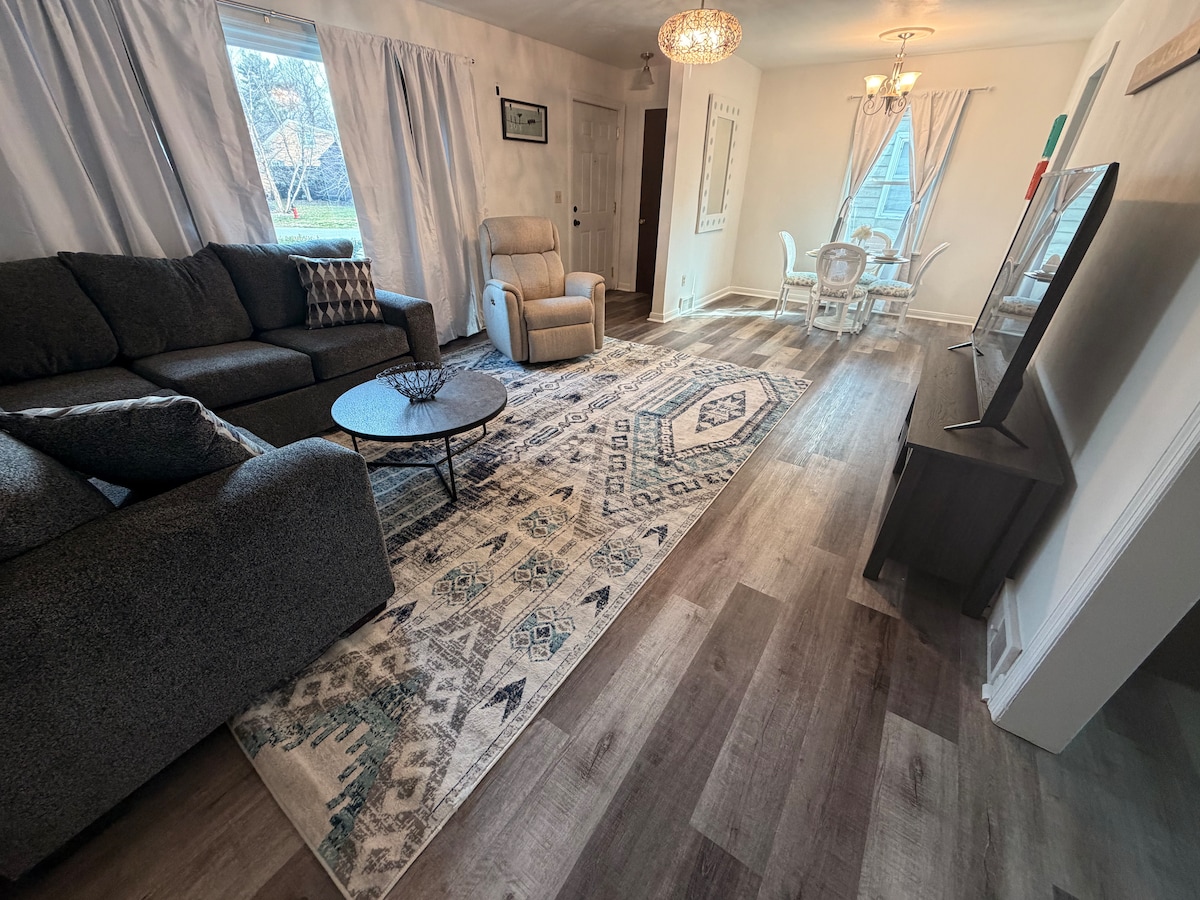 Fuja para o nosso retiro aconchegante, perfeito para famílias e amigos que procuram uma estadia mais longa. Localizada a apenas seis minutos do hospital e a dez minutos do centro de Springfield, nossa casa está aninhada em um bairro tranquilo. Aproveite a conveniência de ter tudo o que você precisa a uma curta distância de 10 a 15 minutos de carro. Experimente conforto e relaxamento em um espaço projetado para sua diversão! O quarto principal tem uma cama king. O segundo quarto tem uma cama queen. Queen e 3º quarto é um colchão completo