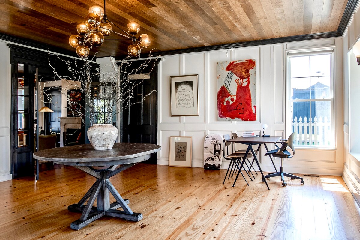 Linda, tranquila, unidade de estilo apartamento estúdio (entrada privada com banheiro completo) escondida em uma fazenda moderna em uma linda e isolada fazenda North Fork. Os hóspedes têm uso exclusivo de varanda de tela, lareira, churrasqueira e área de estar ao ar livre. Jess é uma chef particular e instrutora de ioga, então não deixe de consultar os serviços! Trilhas privadas, ovos frescos, produtos do jardim, equipamentos de praia, Keurig, mini geladeira, granola caseira, chá. Ovos frescos, vegetais sazonais do jardim e refeições (pergunte!)