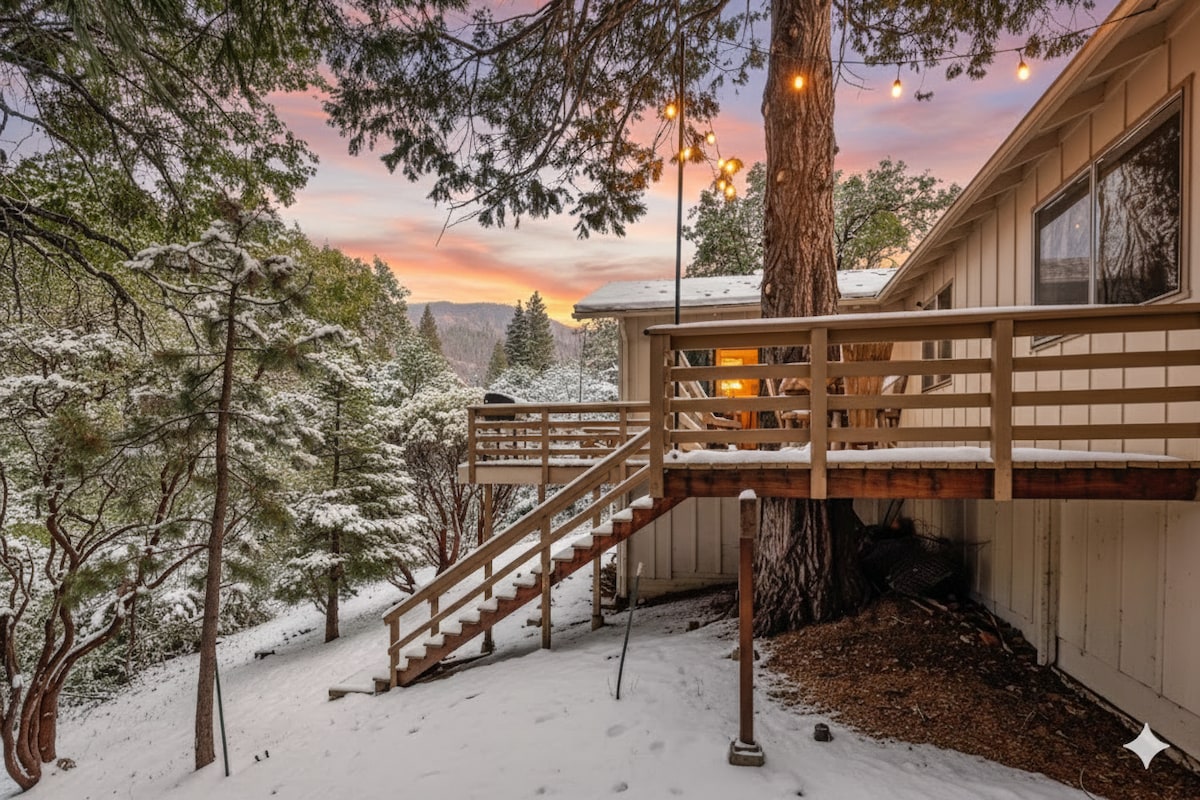 SNOW CHAINS LIKELY REQUIRED late fall to early spring. PONDEROSA CA- SEQUOIA NAT FOREST! 2.5 HOURS from Sequoia PARK same trees-no crowds! A mountaintop paradise away from it all at 7200 ft. Ponderosa is a hidden gem! Enjoy a slower pace of life and breathe the freshest mountain air in this remote mountain town. Enjoy your morning coffee on the deck with endless forest views. @casapondo on Insta for news! REMOTE LOCATION! No restaurant, grocery or gas. Bring your food, take your trash. 😊🌲