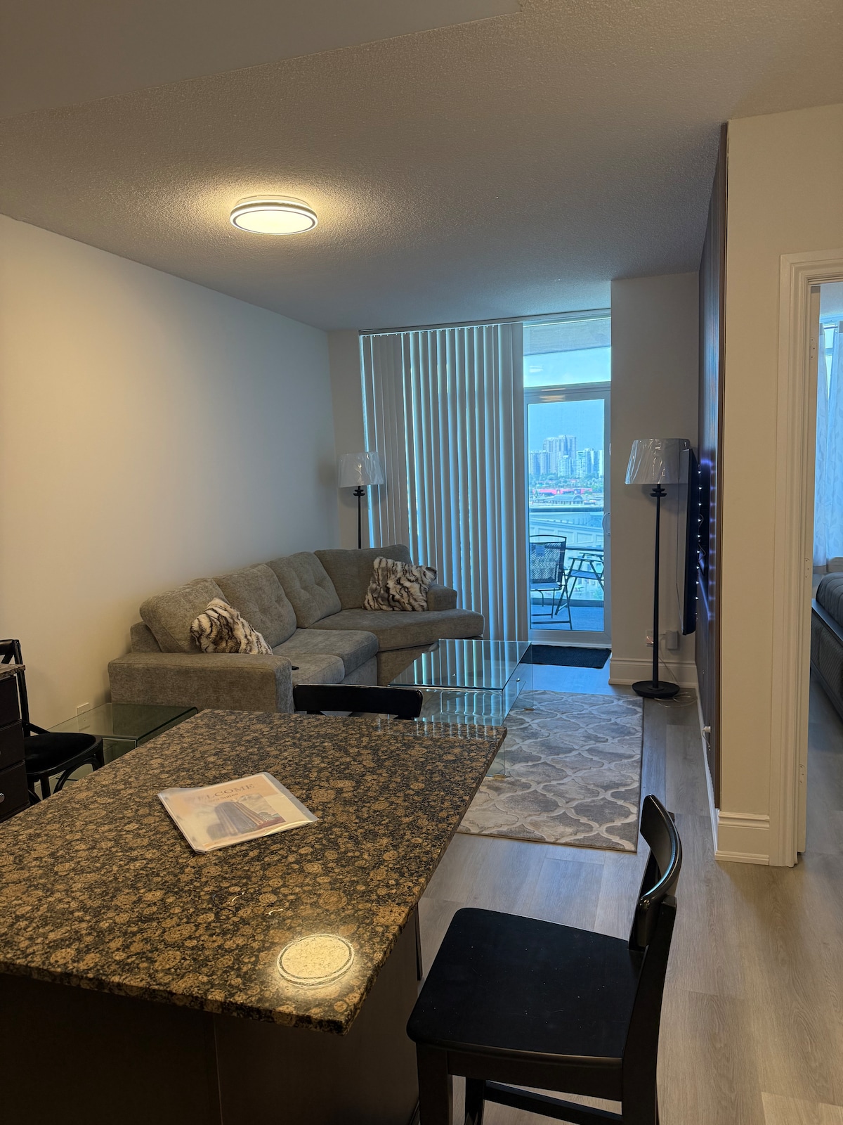Bem-vindo a este apartamento moderno, sofisticado e totalmente mobiliado de 1 quarto localizado no coração do distrito Square One de Mississauga. Possui TV de 65" na sala de estar, TV no quarto, cozinha completa com utensílios de cozinha e itens básicos, lavadora/secadora e Wi-Fi rápido. Desfrute de comodidades do edifício, como academia, acesso seguro, estacionamento, mercearia no local e proximidade a restaurantes e LCBO. Apenas 15 minutos do Aeroporto Pearson e 25 minutos das atrações do centro de Toronto. Perfeito para casais e pequenos grupos.
