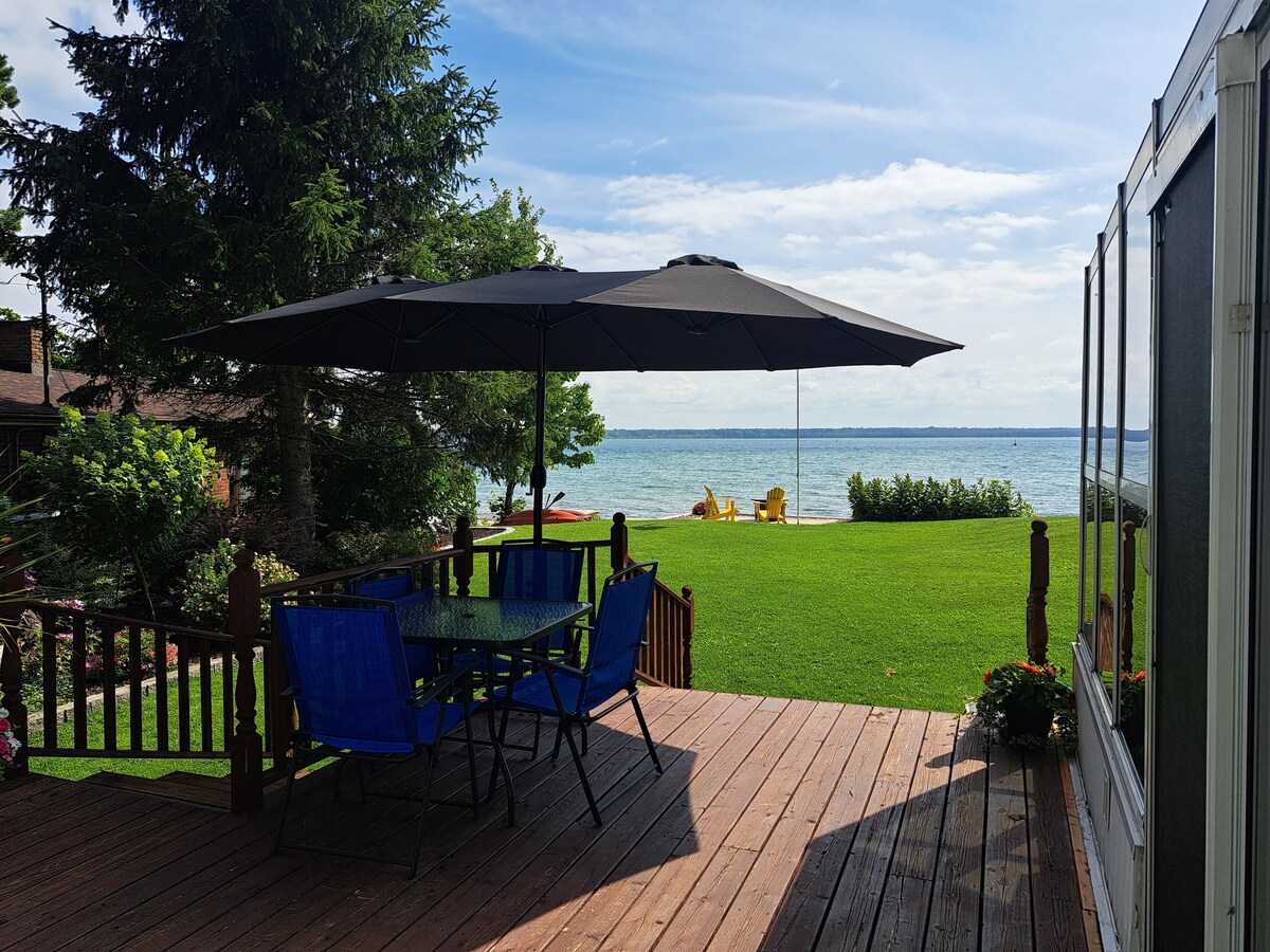 FALL INN by the lake é uma casa de campo de quatro estações, 2 quartos, encantadora frente à praia no belo Lago Superior, lado canadense da fronteira. Praia de areia para diversão à beira-mar. Fogueira com lenha. Decks na frente e atrás da casa de campo. Churrasqueira ao ar livre. A 5 minutos de carro do Aeroporto de Sault, ON, a 20 minutos de carro da cidade, mercearias e lojas. Bairro muito tranquilo de residentes em tempo integral e casas de campo sazonais. Desfrute de cargueiros, caminhadas, ciclismo Aluguel diário (mínimo de 3 dias), verão, outono, inverno e primavera disponíveis.