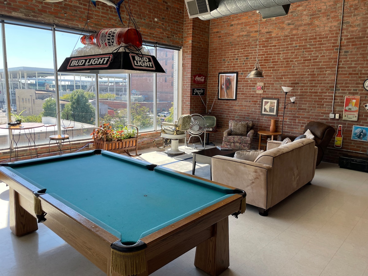 Enjoy this industrial 3rd floor loft with exposed brick and a great view of the brand new MLS Soccer Stadium. This massive 3500 sq ft apartment will offer plenty of room for everyone to relax or have fun while playing pool, darts, or one of our vintage pinball machines. You can choose to walk to several attractions such as Union Station and the City Museum or drive minutes to The Gateway Arch or The Saint Louis Zoo. This apartment has it all and you and your group will not be disappointed!