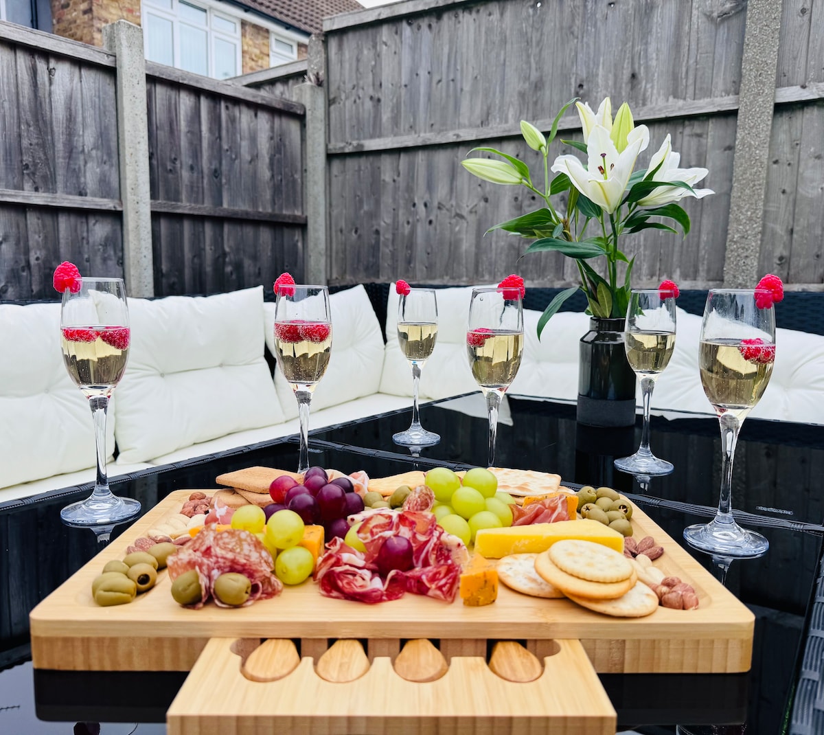 O Garden Cottage é um refúgio tranquilo com detalhes sutis com temas de filmes vintage em toda a casa. Inteiramente separado, permite aos hóspedes total privacidade e independência. Adequado para viajantes de negócios solteiros, casais ou famílias com filhos mais novos. Há estacionamento gratuito no local, um jardim tranquilo e excelentes ligações rodoviárias e ferroviárias (aproximadamente 1 hora de viagem total de ônibus + trem para London Waterloo). Muitas atividades a 15-30 minutos de carro. Perto de Heathrow, Twickenham, Windsor, Richmond, Kew e Hampton Court.
