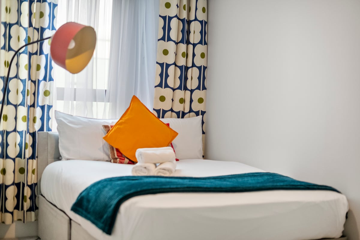 ★ Weekly or Monthly Booking Offer - Relocations & Business Travellers. 🏳 𝐓𝐞𝐧𝐭 𝐒𝐞𝐫𝐯𝐢𝐜𝐞𝐝 𝐀𝐩𝐚𝐫𝐭𝐦𝐞𝐧𝐭𝐬 𝐂𝐡𝐞𝐫𝐭𝐬𝐞𝐲 🏳 🗝 Sleeps Up to 5 Guests 🗝 Bedroom 1- 1 king bed 🗝 Bedroom 2 - 3x single beds 🗝 Fully equipped clean kitchen 🗝 With Hob, Oven, Washing Machine, Fridge 🗝 Professionally Cleaned 🗝 Free WiFi 🗝 located on the 3rd floor and there is no lift ✪ We welcome Families, Friends, Business Travellers & Contractors✪