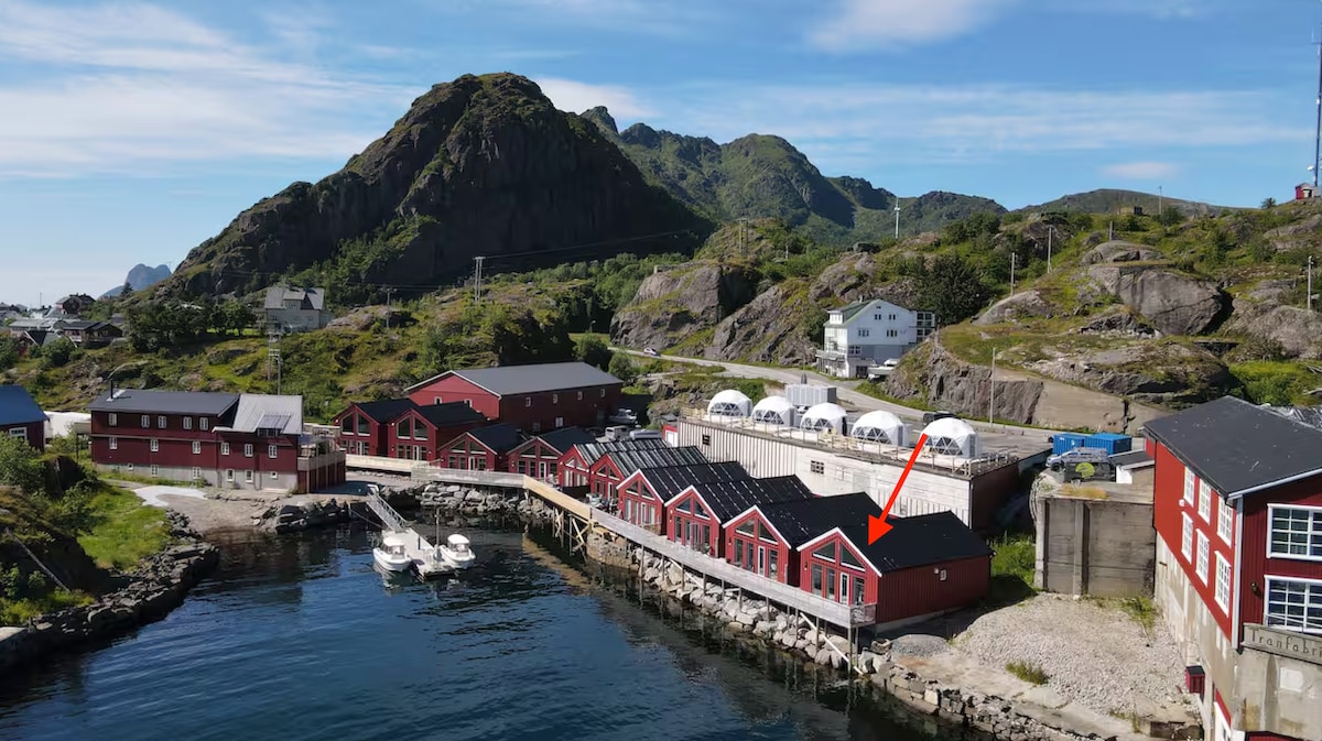 Aproveite sua estadia em Lofoten em uma cabana de pescadores com tudo o que você precisa. A cabana é nova, moderna e fica bem ao lado do oceano e das montanhas. A cabana está equipada com tudo o que você precisa, com uma grande cozinha totalmente equipada, quatro quartos, uma sala de estar com uma bela vista, 1,5 banheiros com chuveiro e máquina de lavar roupa, e uma sala de jantar com espaço para toda a família. Bela lareira na sala de estar no segundo andar.