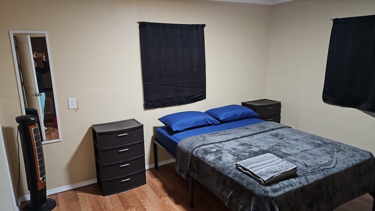 Espaçoso 1QT 1 banheiro com plano de piso aberto para cozinha/jantar/sala de estar. Nossa unidade foi recentemente reformada e oferece Wi-Fi gratuito, novos eletrodomésticos e micro-ondas, lençóis e toalhas limpas, bem como extras localizados no armário com ferro/tábua de passar. O quarto tem cama Queen, escrivaninha e cada quarto tem TV inteligente Amazon Fire com controle remoto para acessar vários aplicativos de streaming. Um pequeno pátio está localizado fora da área de estar, onde o estacionamento é claramente visível para ver seu veículo. Lavanderia no local a uma curta caminhada de distância.