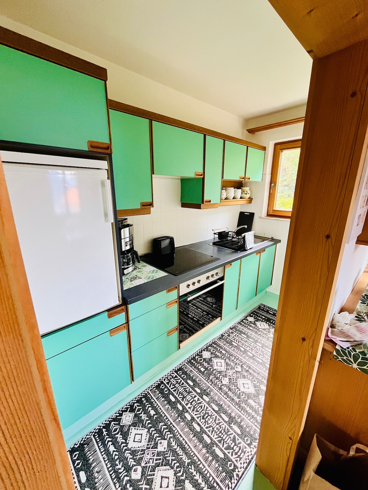 O apartamento Eisenkopf tem um banheiro com banheira e vaso sanitário separado. A sala de estar está equipada com dois sofás, uma unidade de parede e uma televisão. No quarto há uma cama de casal, guarda-roupa, uma cômoda e uma televisão. Na cozinha você encontrará todos os utensílios de cozinha e cafeteira Nespresso ou cafeteira com filtro. Desfrute de belos dias no terraço e relaxe na banheira de hidromassagem! Temos uma garagem para motociclistas. Ideal para 2 a 4 pessoas.