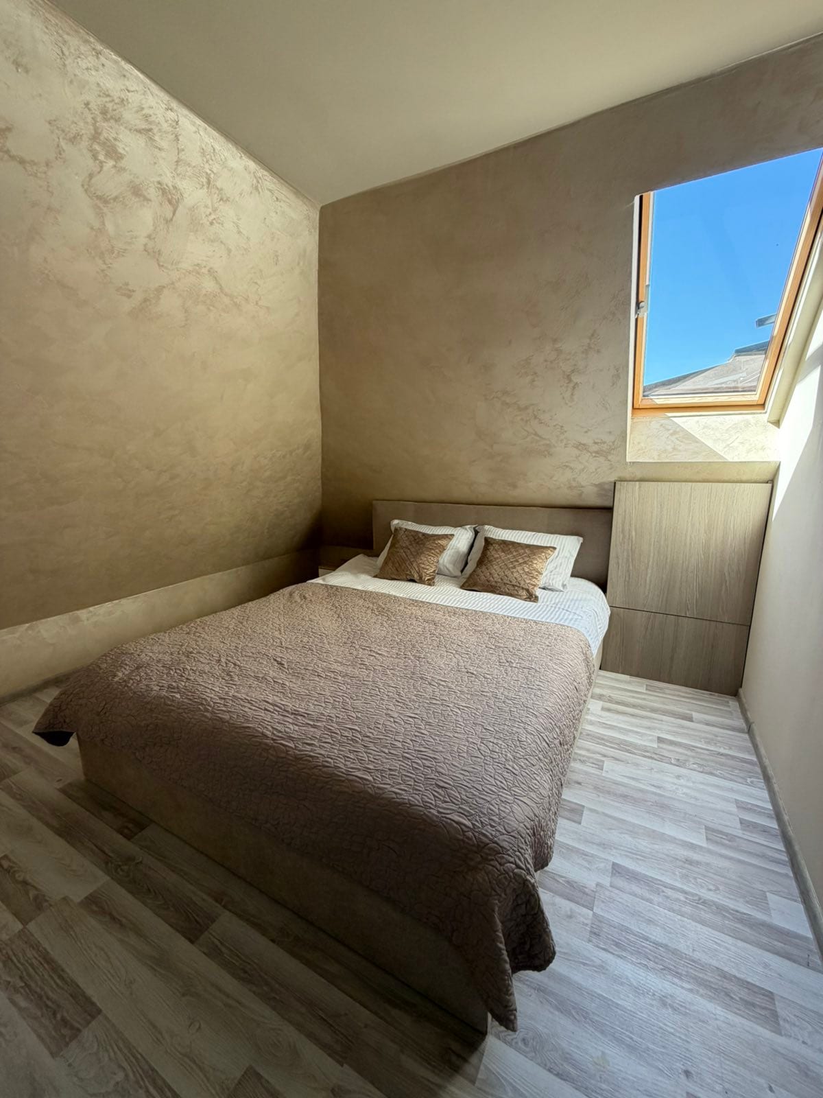 Stay in a brand-new, modern apartment on a quiet aristocratic street in the heart of central Haskovo, just 2 minutes from the theatre. A short stroll brings you to the iconic Bogoroditsa Monument and Haskovo's most scenic park with stunning views. Stylish, spacious, and fully equipped for short or long stays, the apartment offers gas heating, AC, constant hot water, and super-fast internet. Your perfect retreat for comfort and convenience awaits!