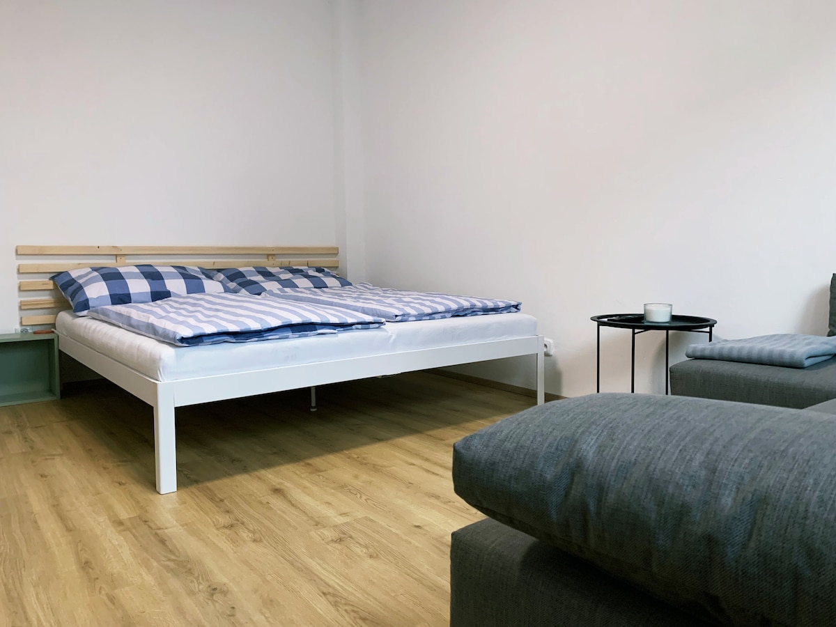 Apartamento recém-reformado, totalmente mobiliado, 1+KK com terraço, voltado para o pátio, localizado no 1º andar do prédio. É acessível por escada (não há elevador). Embora a casa esteja na praça, o apartamento é tranquilo e silencioso. A cerca de 5 minutos a pé, há o castelo de Slavkov com um belo parque, restaurantes, confeitarias, cafés, lojas de vinhos, lojas, etc. Nas proximidades há também um campo de golfe, uma piscina e outras instalações esportivas.