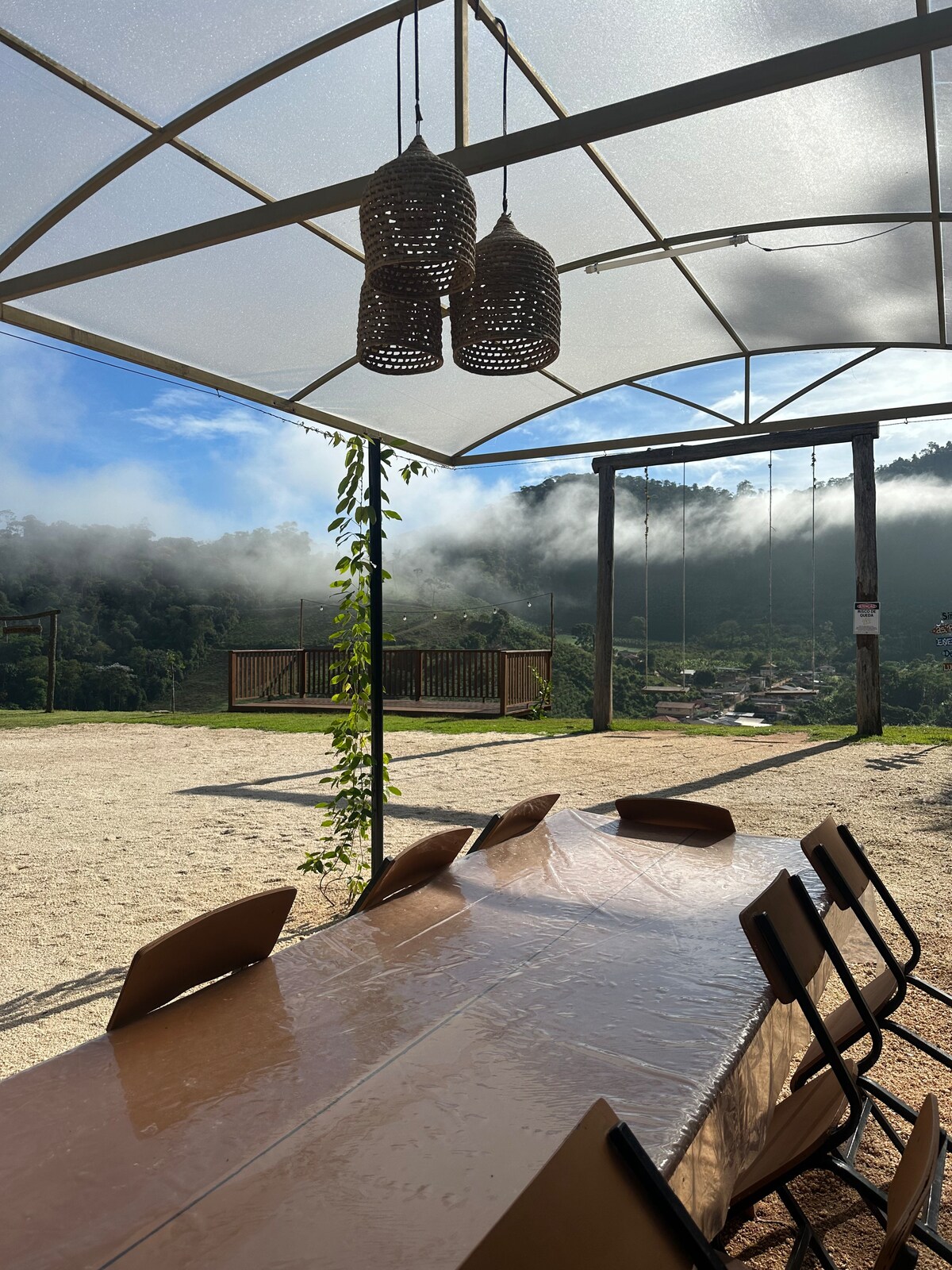 Chácara Vista da Mata. Localizada em um condomínio fechado a apenas 8 Km do centro de Santa Teresa, a Chácara Vista da Mata é o refúgio perfeito para descanso e lazer. Com um amplo quintal gramado e totalmente cercado para a segurança dos pets, oferece uma banheira de hidromassagem aquecida com vista para a mata, além de um balanço para a contemplação. Ideal para casais e famílias que buscam conforto, privacidade e uma experiência única de paz, descanso e conexão com a natureza.