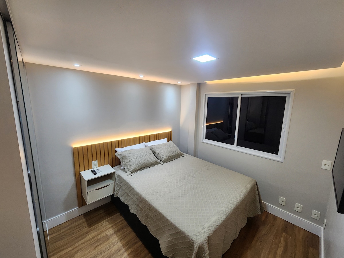 AP 1/4 moderno, aconchegante, em local seguro próximo de supermercado, shopping, bares/restaurantes, pontos turísticos andar alto, com vista, edifício com 2 piscinas, academia, hidro, sauna INCLUSO -Roupa de cama e toalhas - 1 vaga garagem - Cozinha completa - Lava louças - Maquina lava e seca roupas - Smart TV 65" c/ Netflix - Wifi - Alexa (Automação Residencial) - Cafeteiral Oster primalatte - Churrasqueira elétrica -Ar-cond no quarto e sala - Ferro de Passar - Secador
