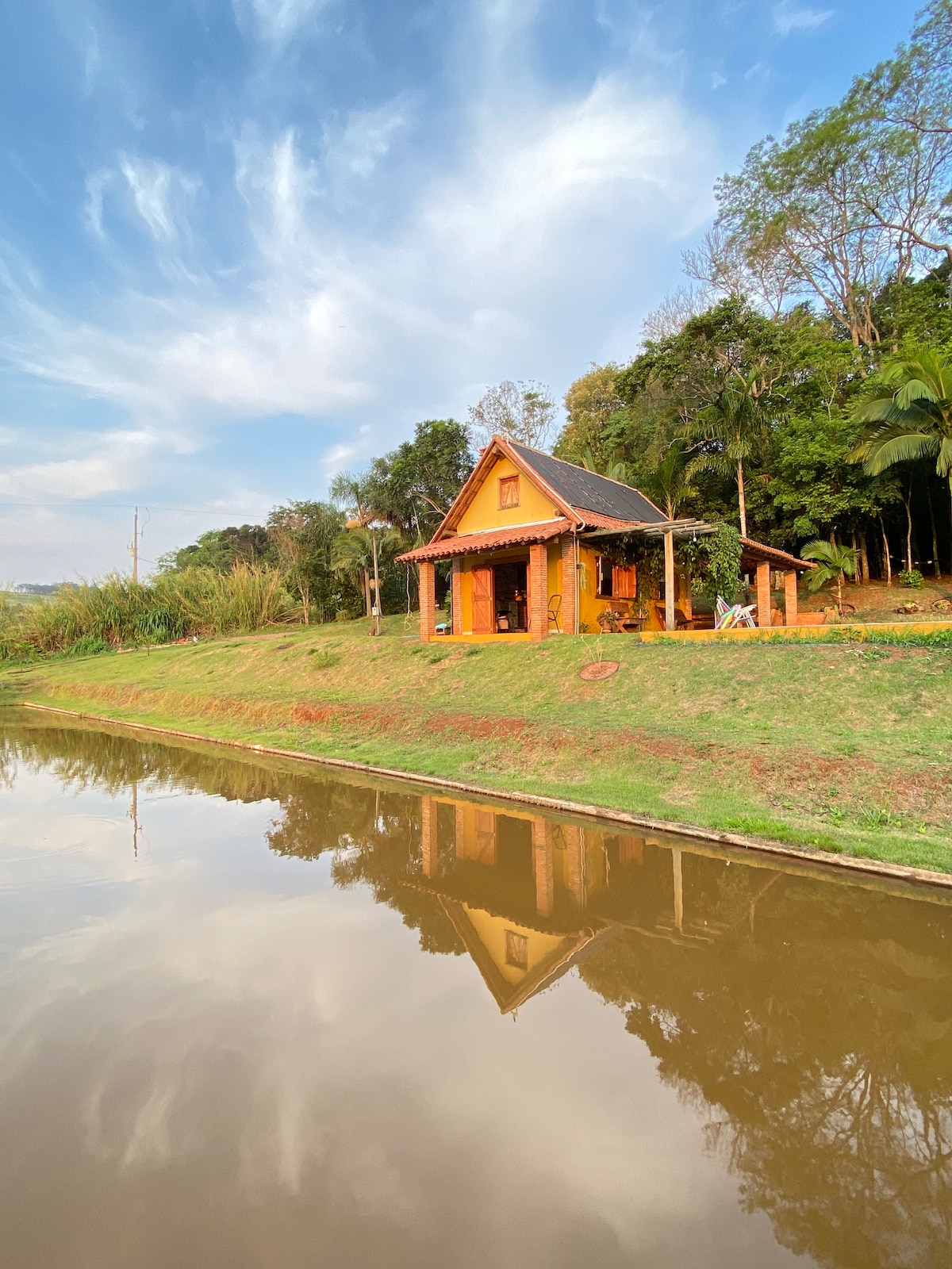 Refúgio tranquilo cercado pelo verde, a poucos minutos da cidade. Nosso chalé parece ilhado na paisagem, ideal para quem busca paz e conexão com a natureza. Desfrute do lago exclusivo com caiaque, relaxe na prainha de areia ou pratique pesca esportiva (captura e soltura). À noite, aprecie um vinho junto à fogueira sob o céu estrelado. O chalé tem cama king no mezanino, sofá-cama na sala e cozinha equipada. Cada detalhe foi pensado para sua estadia ser inesquecível.