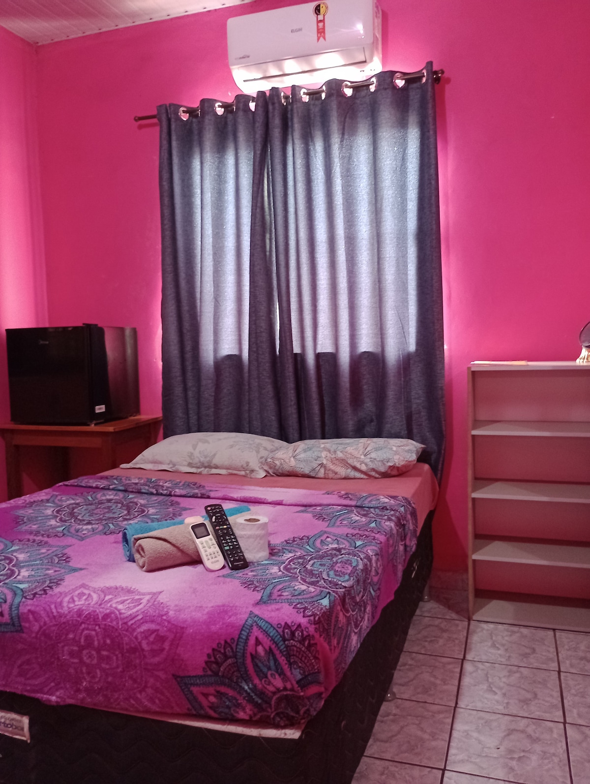 Com uma vizinhança bastante calma e segura, a casa está localizada a poucos minutos de restaurantes, lojas e academias e menos de 100m do asfalto. Os donos da casa principal são seu Renato, Dona Rosa e eu, temos uma poodle de pequeno porte chamada Loli. Será um prazer compartilhar o café da manhã, sempre dividimos com os hóspedes. Quarto com cama de casal Banheiro privativo Cozinha e sala de jantar Wi-fi gratuito, TV Chromecast, closet, toalha Estacionamento gratuito SEM CENTRAL DE AR