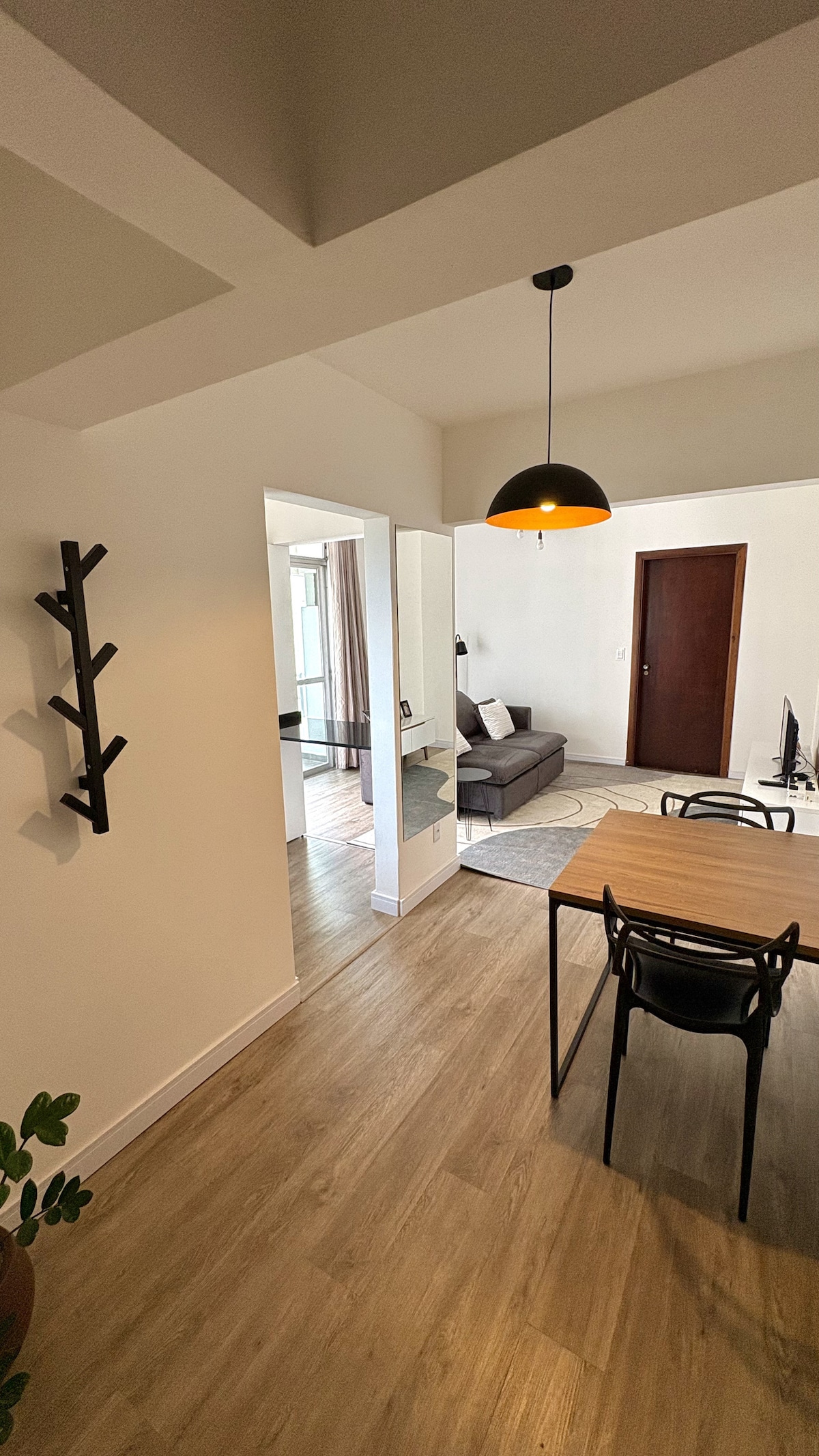 Apartamento de 75 m2 de frente para a baía de Floripa, próximo ao shopping, restaurantes e bares. 1 suíte completa com colchão massageador e frigobar, 1 quarto, cozinha completa e sala com sofá cama. Janelas duplas com isolamento acústico, smart tv de 55”, tv a cabo, internet.