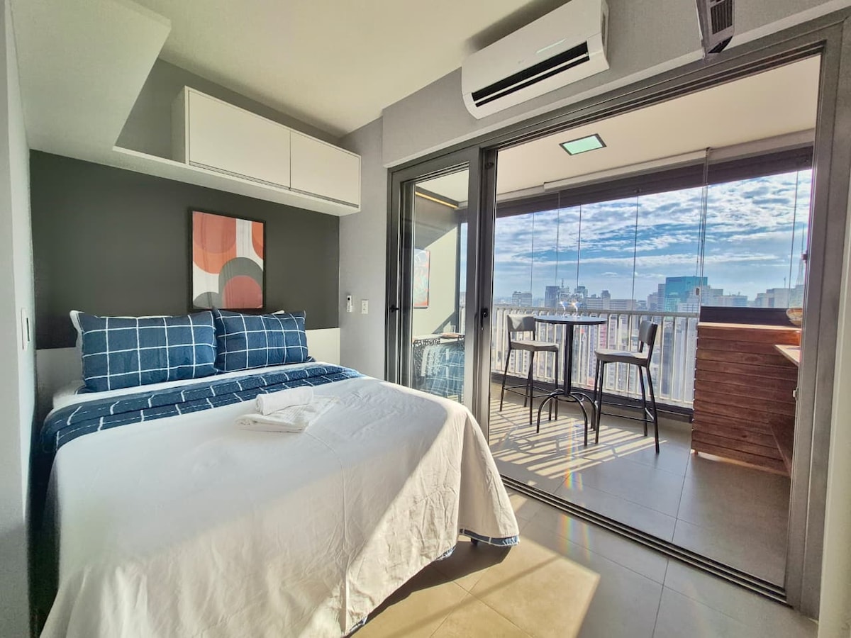 StudioR23 | República - Vista de SP + Wi-Fi + Piscina