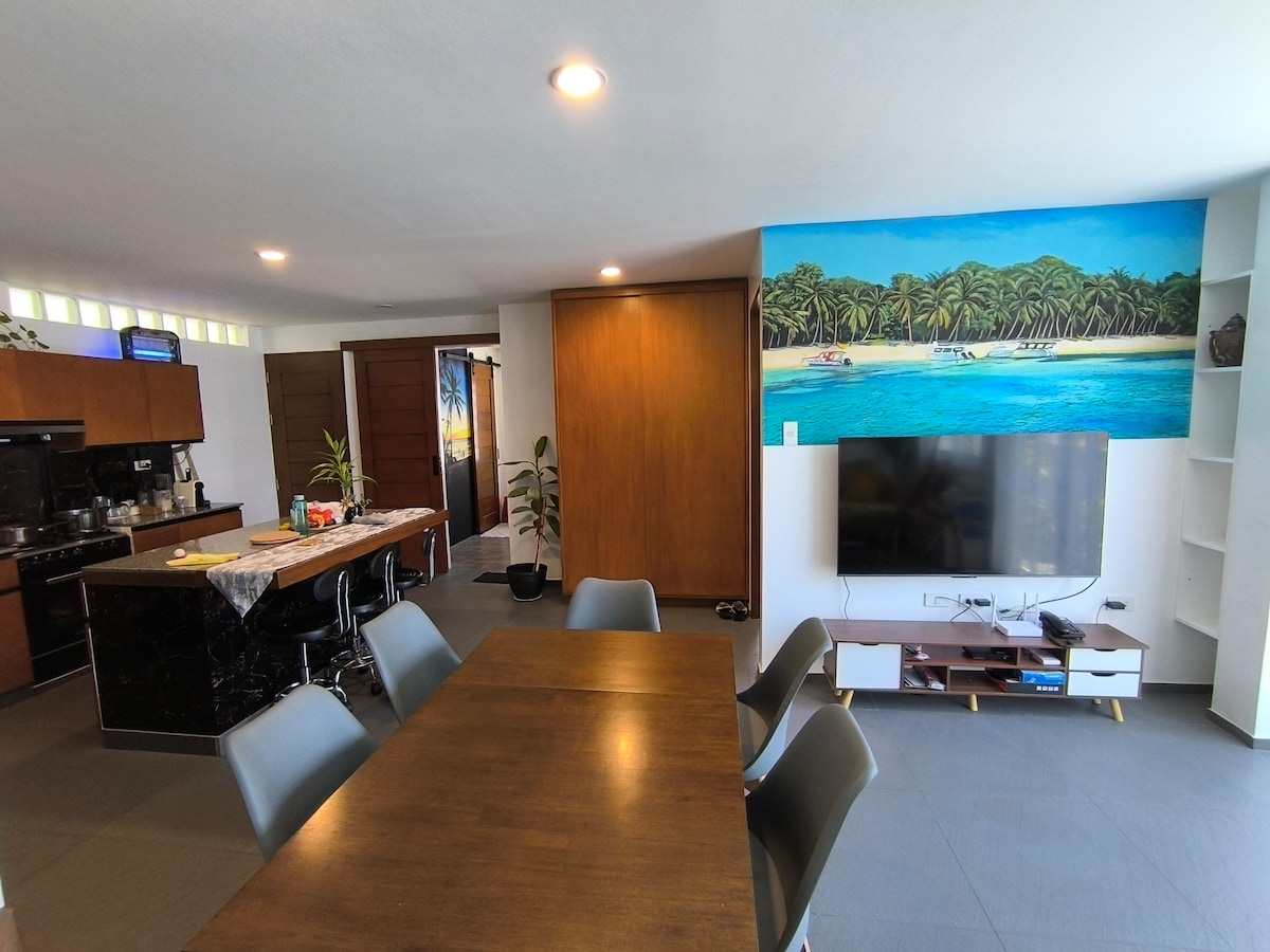 Nossa cobertura de 3 quartos fica a 5 minutos a pé da praia na Estação 1, uma das áreas mais relaxadas e convenientes de Boracay. A Estação 1 é conhecida por sua areia branca macia e águas calmas e claras, tornando-a ideal para famílias com crianças e grupos de viagem. A unidade acomoda confortavelmente até 6 hóspedes, com uma taxa adicional de pessoa a partir do 5º hóspede. Estamos localizados perto da praia, supermercado, loja de departamentos e comércio local para uma estadia sem estresse.