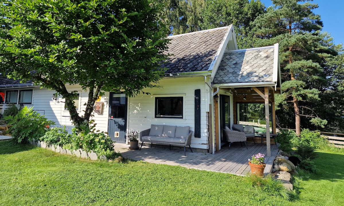 Gammelt lite hus i enkel standard, fra ca 1900. Sjarmerende skeivt hus med lav takhøyde i deler av huset. (175cm i kjøkken) 30m2 i grunnflate. Hems med stor komfortable dobbeltseng, soverom 1 inneholder en enkel seng. Enkel kjøkkenløsning med kjøl/frys, og kokeplater. Spiseplass i stue. Bad med toalett og dusj. Enkel standard. Stue med TV og Internett. Brygge med mulighet for bading i sjø og fiske. Naturskjønne omgivelser med turområder rett utenfor døren. Fin utsikt til sjøen