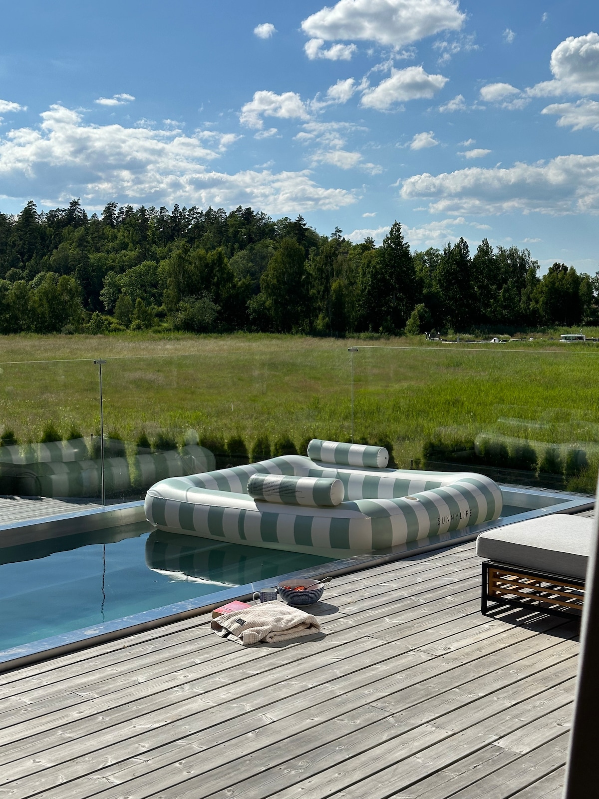 Duas encantadoras casas recentemente decoradas, grande jardim privado, cais próprio, barco, sauna e pátios duplos com sol da manhã ao pôr do sol. Esta casa de férias está na melhor localização com lagoa privada virada para o sul sem vizinhos e com o máximo de sol noturno. Aqui, 1 a 2 famílias podem ficar e desfrutar de natação, pesca e atividades. A pousada tem banheiro privativo e 4 camas. A casa grande tem cozinha, banheiro, sala de estar, varanda de ponche, quarto com cama de casal e alcova para dormir com cama de casal. Hyrs ut tor-tor.