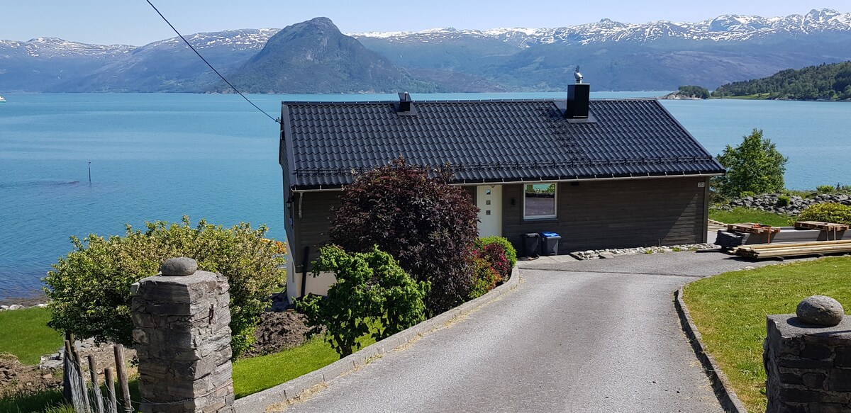 Chalé acolhedor à beira-mar com vista para o Hardangerfjord. A cabana tem um interior dos anos 60 com sua própria atmosfera calorosa. Cozinha bem equipada. Cozinha e sala de estar na mesma sala. Banheiro com aquecimento sob o piso. O quarto 1 tem uma cama de casal. O quarto 2 tem uma cama de solteiro. Quarto nº 3 tem 2 camas de solteiro e uma entrada separada do terraço. Sol da manhã na parede da cabana para o leste. Terraço para o oeste. Você pode dirigir até a porta. O chalé é adequado para uma família, casal ou amigos.
