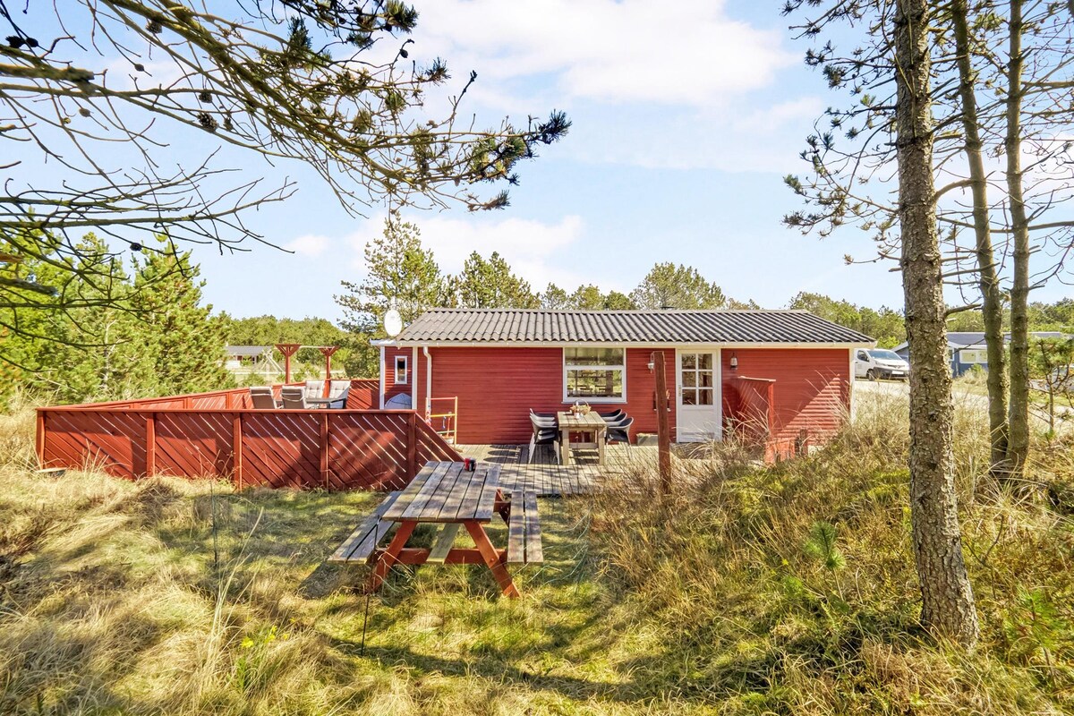 Casa de veraneio no meio do Parque Nacional Thy com a possibilidade de boas experiências na natureza e surfe. A casa está situada em uma grande área natural com abrigo, fogueira, caixa de areia e balanços. A comida pode ser preparada ao ar livre no terraço, que está equipado com churrasqueira e forno de pizza. Há sauna ao ar livre, chuveiro ao ar livre com água quente e fria. A casa tem dois quartos com 4 camas, banheiro totalmente novo, cozinha agradável / sala de estar, e sala de estar com grande alcova com 2 camas adicionais. A casa tem bomba de calor e fogão a lenha (lenha incl.)