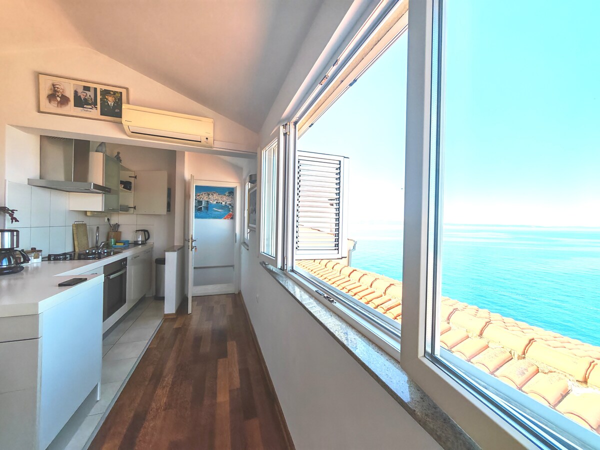 Bem-vindo a um apartamento ensolarado à beira-mar. Comece o dia sob um chuveiro de efeito chuva e termine assistindo TV a cabo ou Netflix no conforto da cama. Relaxe em um sofá grande e planeje uma viagem a uma cidade histórica. Pisos de madeira dão aconchego a um interior bem decorado. Cozinhe algo em uma cozinha totalmente equipada. Encontre conforto em dois quartos com camas de madeira confortáveis com lençóis de algodão branco. Depois de um dia inteiro de diversão, relaxe com uma taça de vinho em uma varanda com uma vista excepcional para o mar.