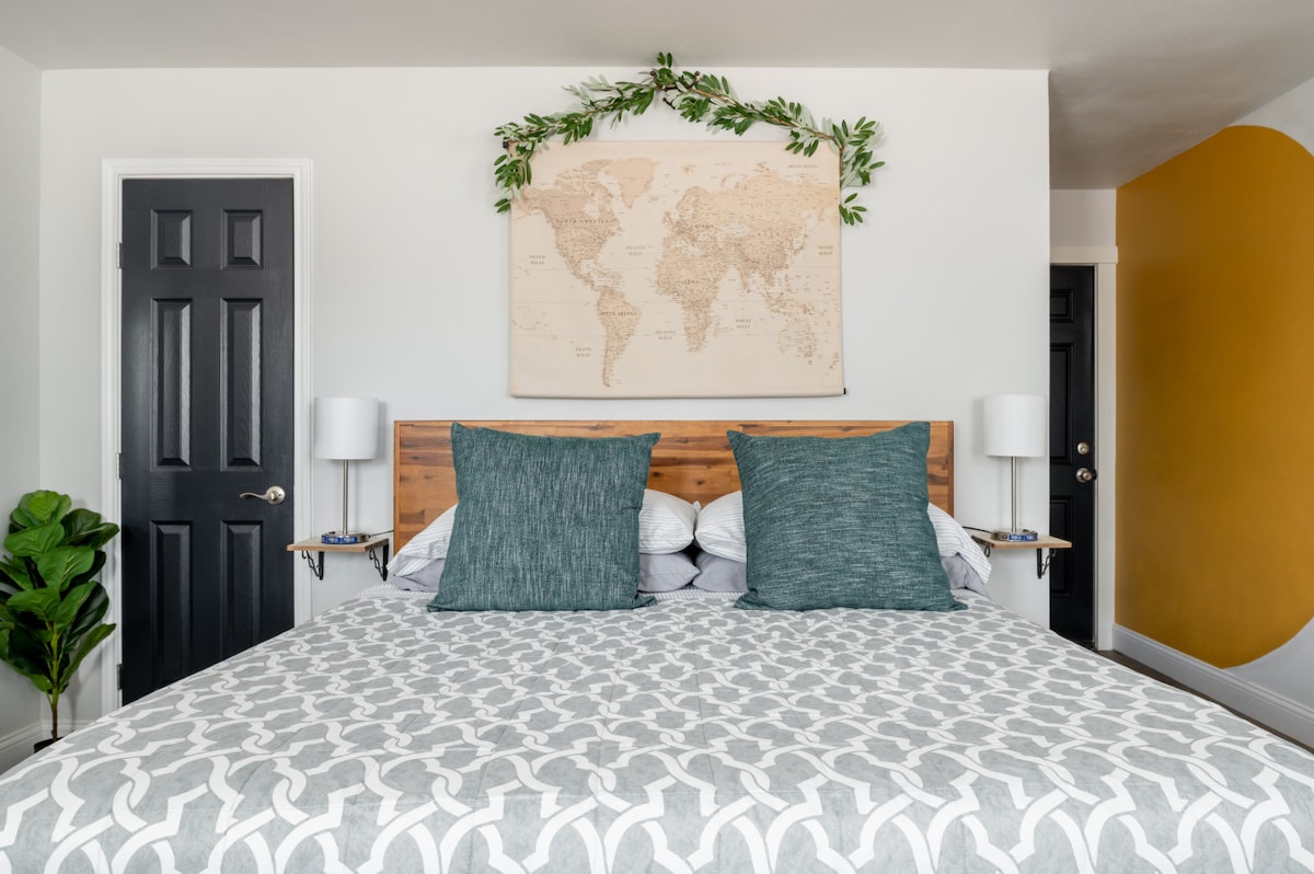 Schoaf Cottage: cama king size/cozinha americana/banheiro completo