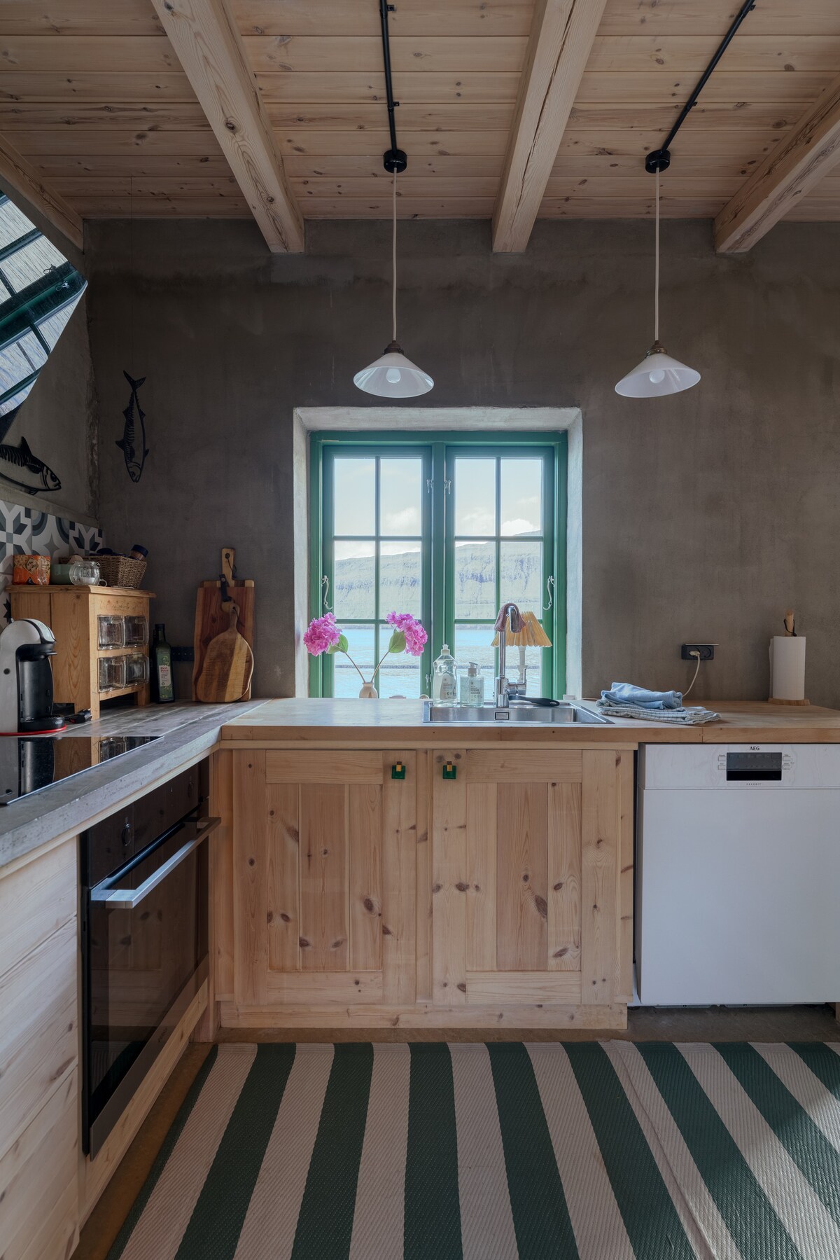 Desfrute de uma estadia repleta de história em um armazém renovado de 100 anos à beira-mar no porto local das Ilhas Faroé. Totalmente reformada em 2019, a LPH oferece todas as comodidades modernas, preservando, ao mesmo tempo, as características tradicionais da casa, com vigas expostas originais, tons neutros e piso de madeira de carvalho. Durante a reforma da casa, também foi dada ênfase à sustentabilidade ambiental, com a instalação de um sistema de aquecimento térmico oceânico. Consulte nosso anúncio do Airbnb para o apartamento no andar intermediário.