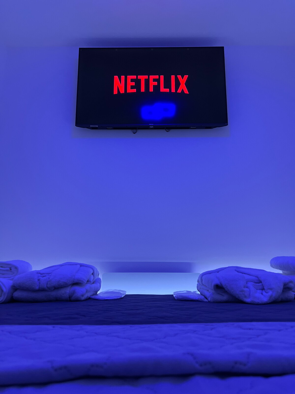 Estúdio de cinema com tela gigante de 85" + Netflix + Fibra