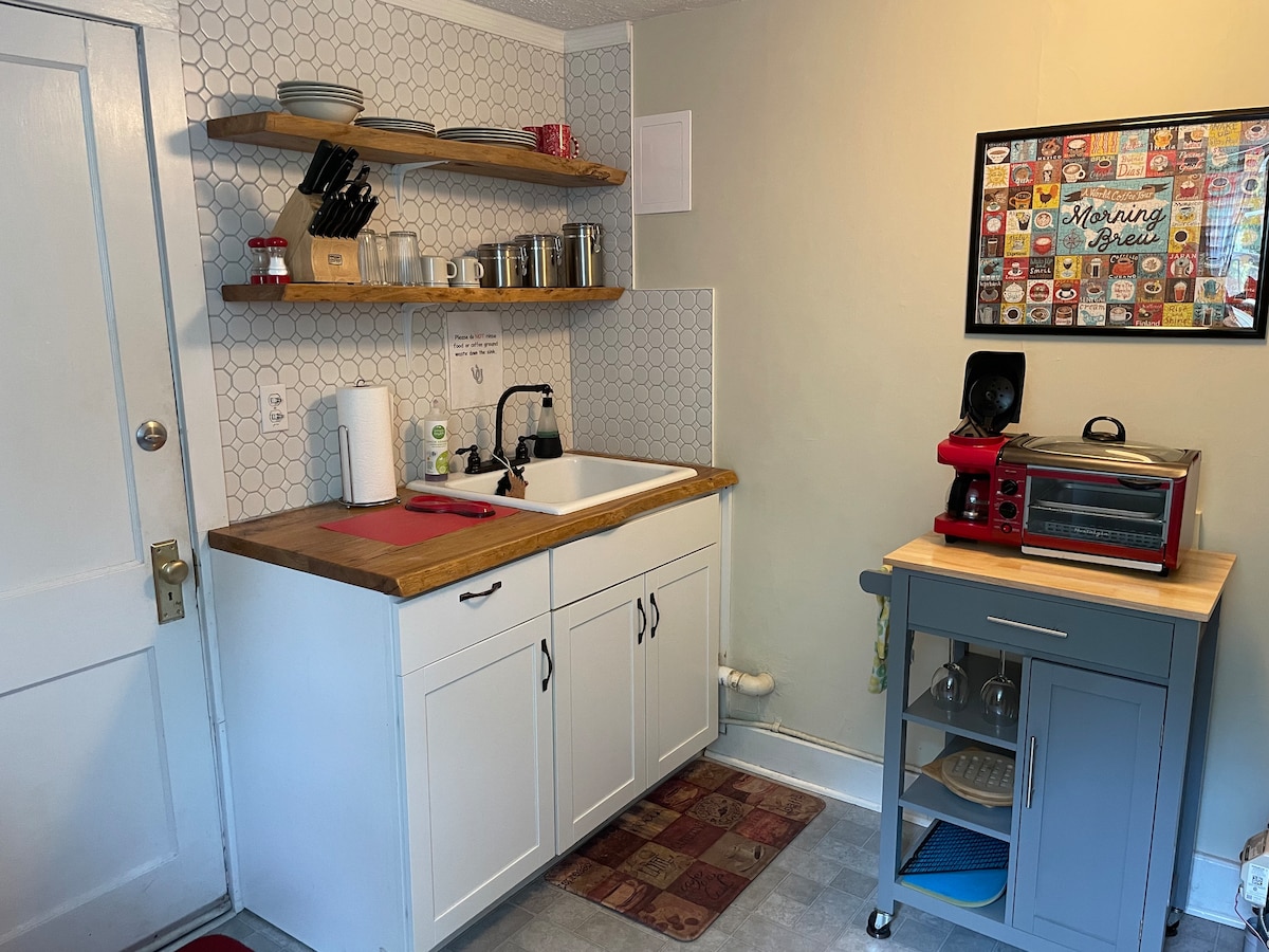 Uma antiga casa de campo totalmente renovada e aconchegante que combina o caráter de vigas de madeira moídas, acabamentos artesanais e arte local com os confortos modernos de Wi-Fi, streaming de TV, A/C e um chuveiro de hidromassagem que pode aumentar sua atitude com a altitude! Na entrada do centro histórico de Waynesboro e do parque à beira-rio, seus restaurantes e lojas podem entreter até mesmo o paladar peculiar ou colecionador, alguns estão do outro lado da rua! Totalmente cercado no quintal, então traga os filhotes para brincar!