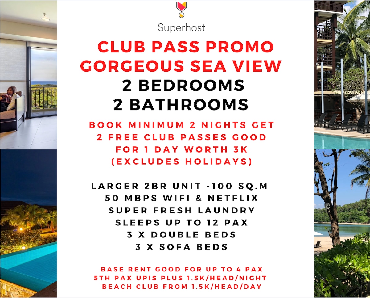 I’m a Superhost with 700+ reviews ✓ We live at Anvaya ensuring your stay is seamless ★ Super clean unit with professional laundry ★ Cooking Allowed ★ WiFi/Netflix ★ Base rate good for up to 4 pax ★ Additional pax @ 1.5k/head/night ★ Beach Club entry from 1.5k/head/day - only paid on days you actually enter the club ★ Beach Club now managed directly by Ayala Hospitality ★ New Head Chef who trained at Enderun ★ Makes a great base to also explore Zoobic Safari, Ocean Adventure & Las Casas Filipinas