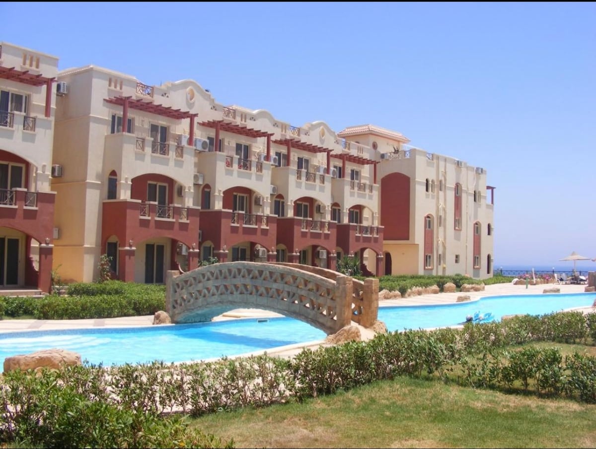 Lugar único, o que você precisa exatamente para umas férias em família com uma vista magnífica sobre o Mar Vermelho. 2 quartos, 1 banheiro, sala de estar aconchegante com cozinha aberta. Piscina a poucos passos de casa, bem como praia de areia perfeitamente necessária. Promenade está disponível para caminhadas ou passeios de bicicleta. Ao lado, ótimo restaurante de frutos do mar e supermercado incrível também para todas as necessidades. Somente famílias