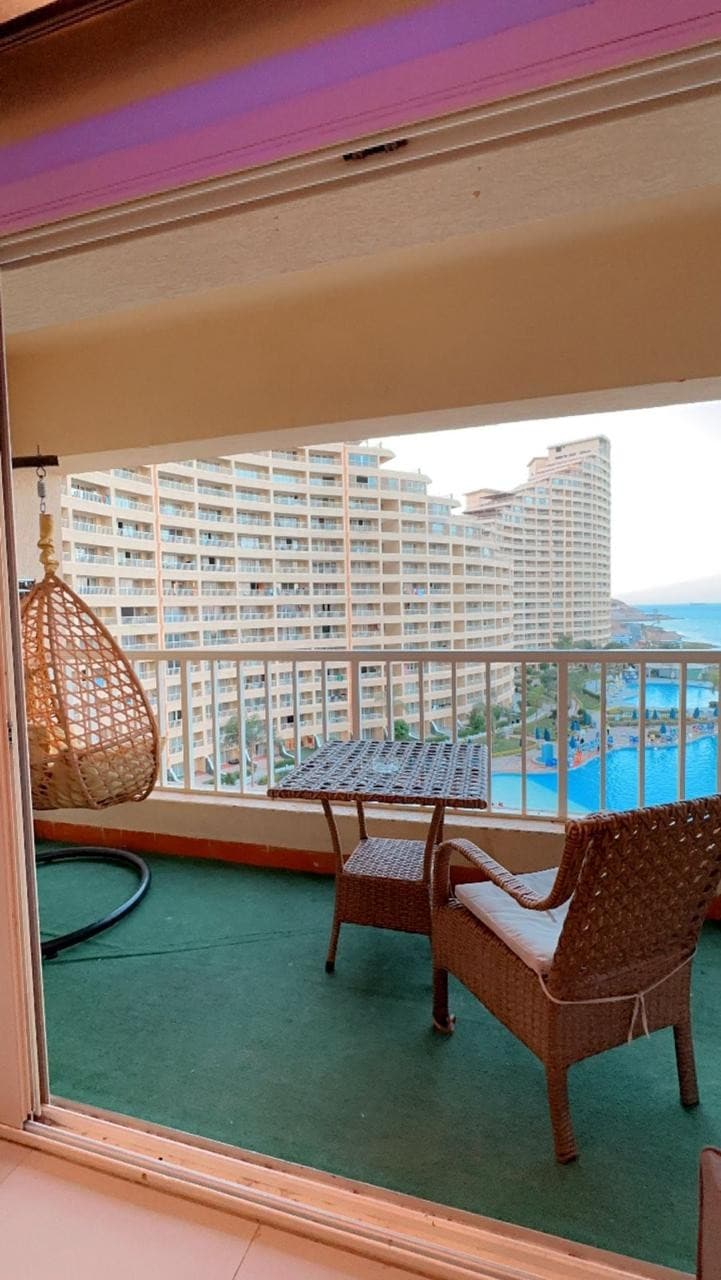 Desfrute do conforto de um chalé familiar aconchegante com luxo de resort e vistas deslumbrantes! Nosso chalé de cobertura com 3 quartos e ar-condicionado está localizado no sofisticado resort Mountain View Sokhna 2 em Ain Sokhna, a uma curta caminhada da praia de areia e de frente para a piscina aquecida (opera de novembro a maio). Perfeito apenas para famílias que valorizam a tranquilidade, a limpeza e as excelentes vistas, tudo dentro de um dos complexos mais elegantes e pacíficos de Ain Sokhna. (Animais de estimação não são permitidos.) Capacidade máxima de 6 adultos e 4 crianças