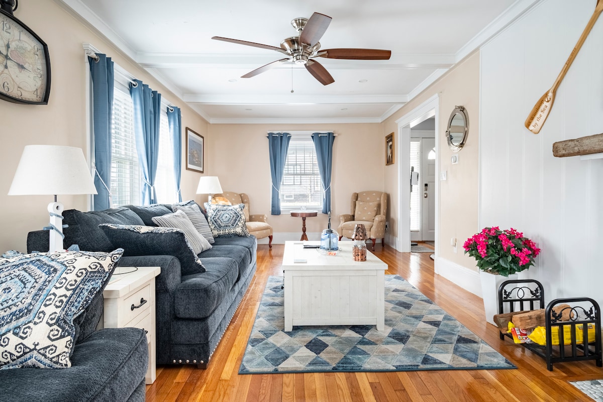 Quarto Arlington Craftsman Azul, Interior. Bem restaurado