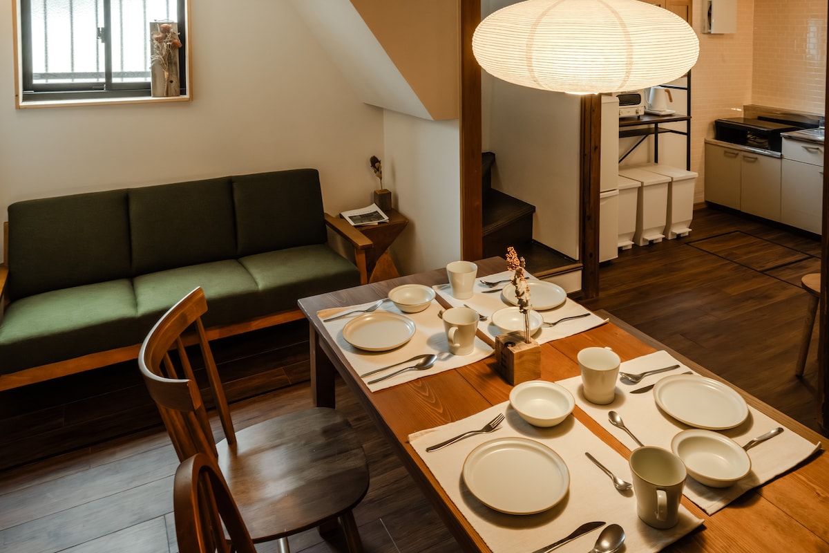 住进大阪的日常生活,在安静的住宅街体验真正的日本之家。 「木香の家」位于J R桃谷车站步行约2分钟的安静住宅街中。 离开车站的热闹后,转入小巷,暖色灯光与木格栅迎接您的到来。这里不是观光区的公寓,而是一座可以体验日本日常生活的家。客厅连接传统榻榻米空间,适合在一天旅行结束后放松,喝茶与慢慢度过夜晚。希望您在这里感受到像回到日本家中般的安心。 房源特点:R桃谷车站步行2分钟,直达天王寺 难波 大阪城,整栋独立使用安静舒适,榻榻米客厅与日式空间体验,适合家庭与朋友旅行。房源特点:桃谷是大阪少见仍保留生活气息的区域。 清晨能看见上学的孩子与开店的邻居,夜晚则安静而安心。 从这里搭乘J R环状线,几分钟可抵达天王寺,大阪城与难波。却能在一天结束后回到真正的住宅街。