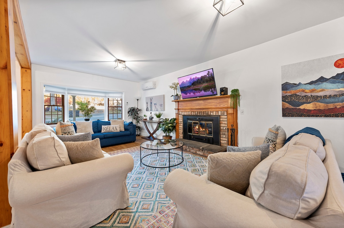 Entre neste retiro cheio de luz e recém-renovado na cidade fluvial. O celeiro foi transformado em um oásis aconchegante e elegante com todos os confortos modernos. No interior, você encontrará um estúdio exuberante em plano aberto com tetos altos de 6 metros. Planeje uma viagem romântica para dois. Seus amigos peludos são bem-vindos! Seja um inverno com neve ou uma noite de verão estrelada, é o momento perfeito para mergulhar na banheira de hidromassagem e se reunir ao redor da fogueira.
